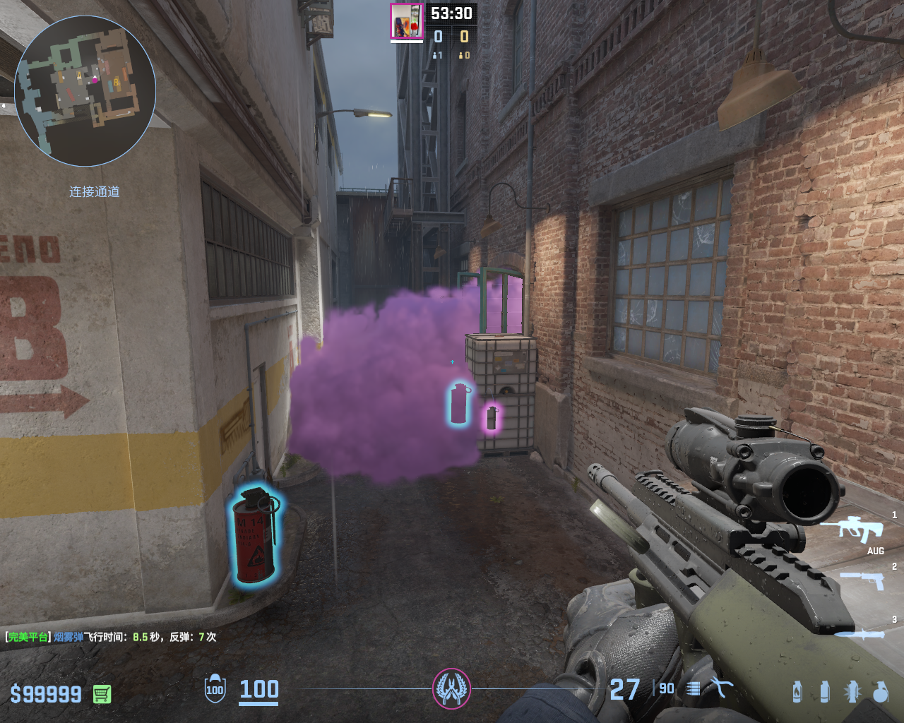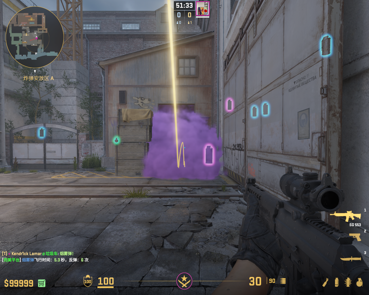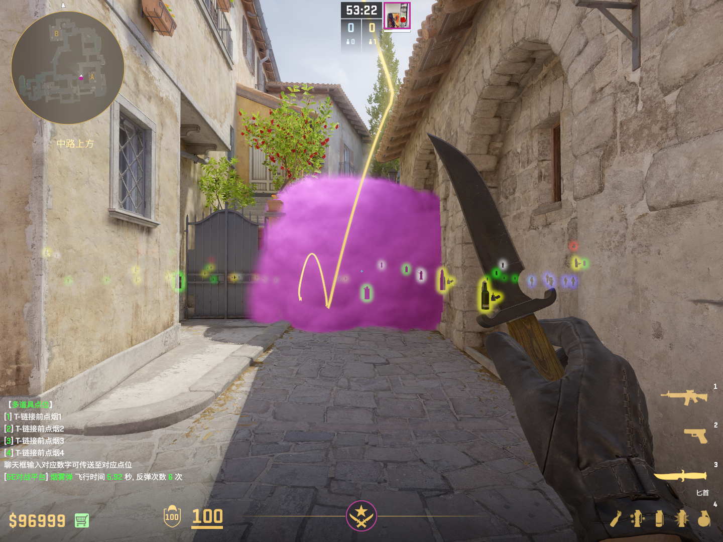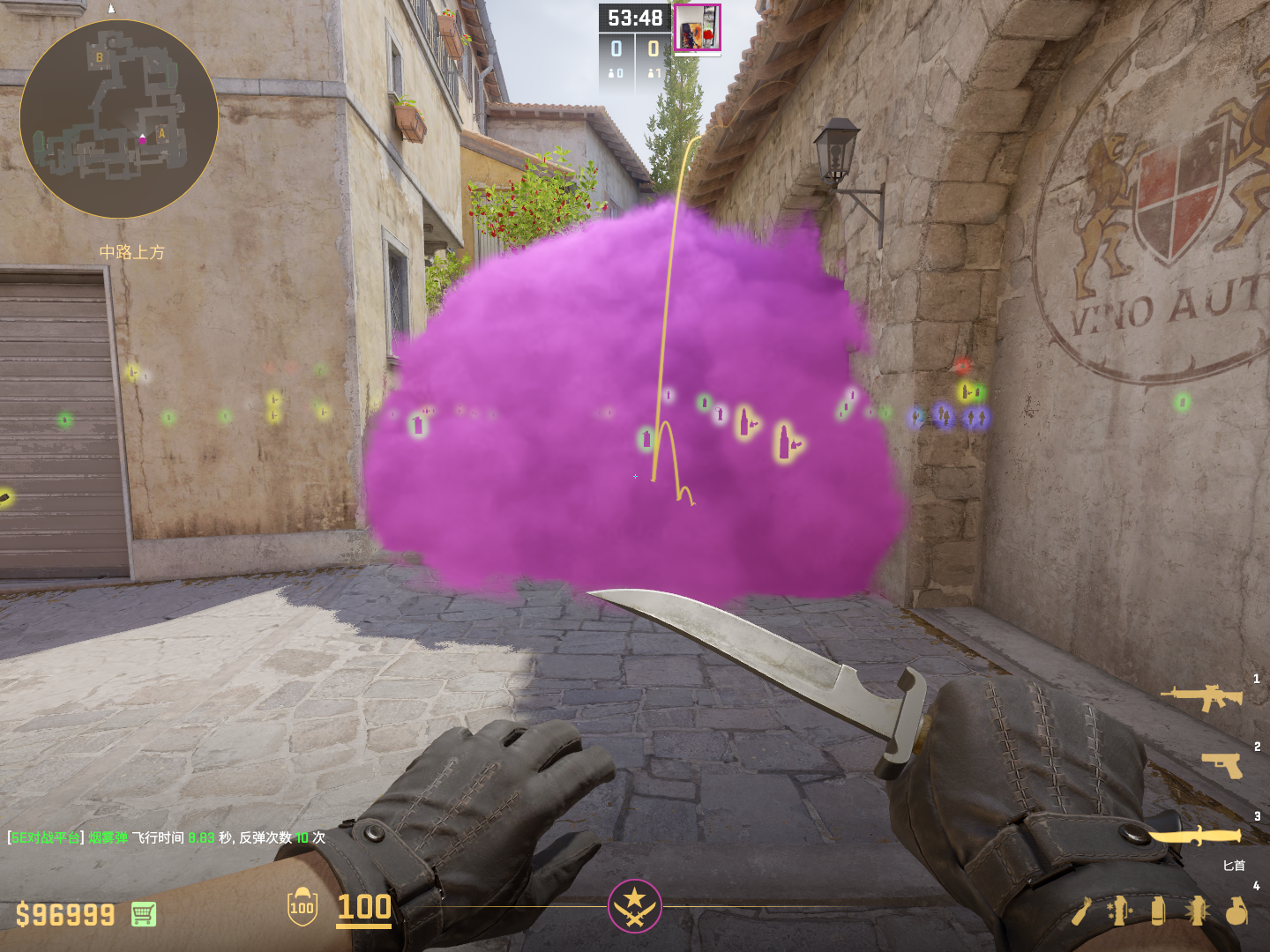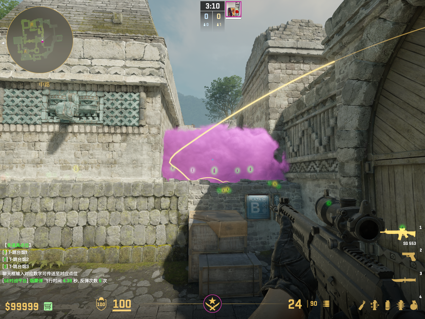 一点多用的闪光 但只能白玻璃房和死点直架的敌人 不白出门队友只适合在此处丢完警家烟雾弹顺手丢出