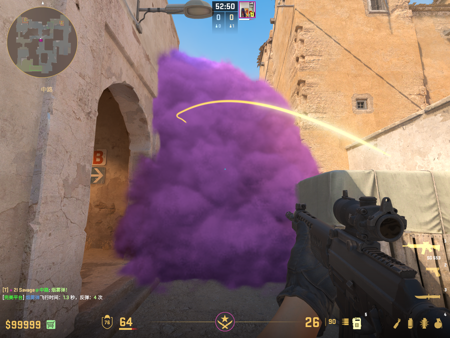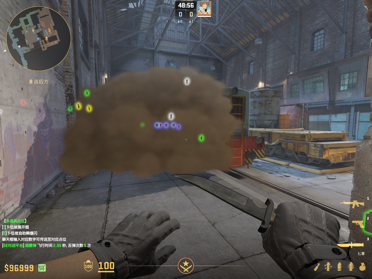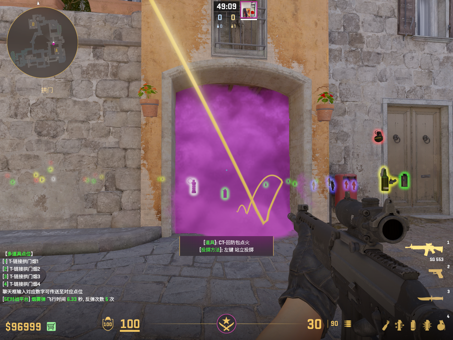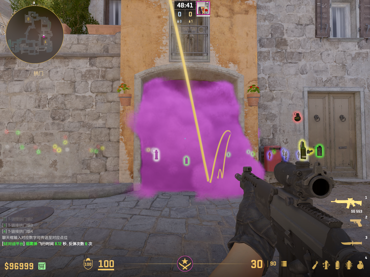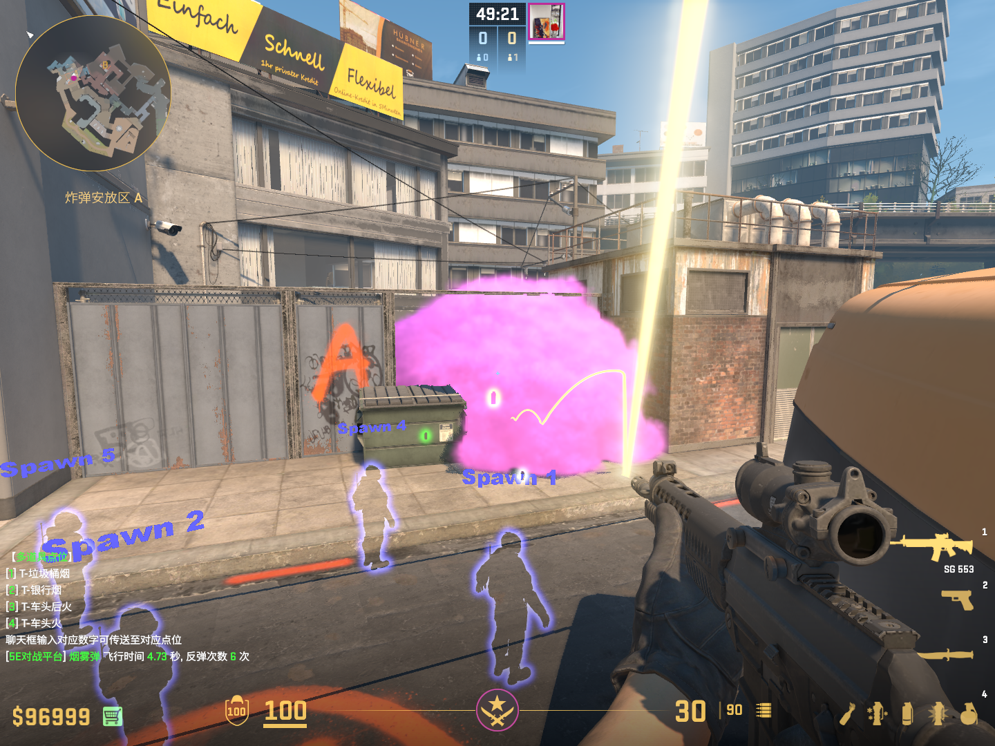 一点多用的闪光 但只能白玻璃房和死点直架的敌人 不白出门队友只适合在此处丢完警家烟雾弹顺手丢出