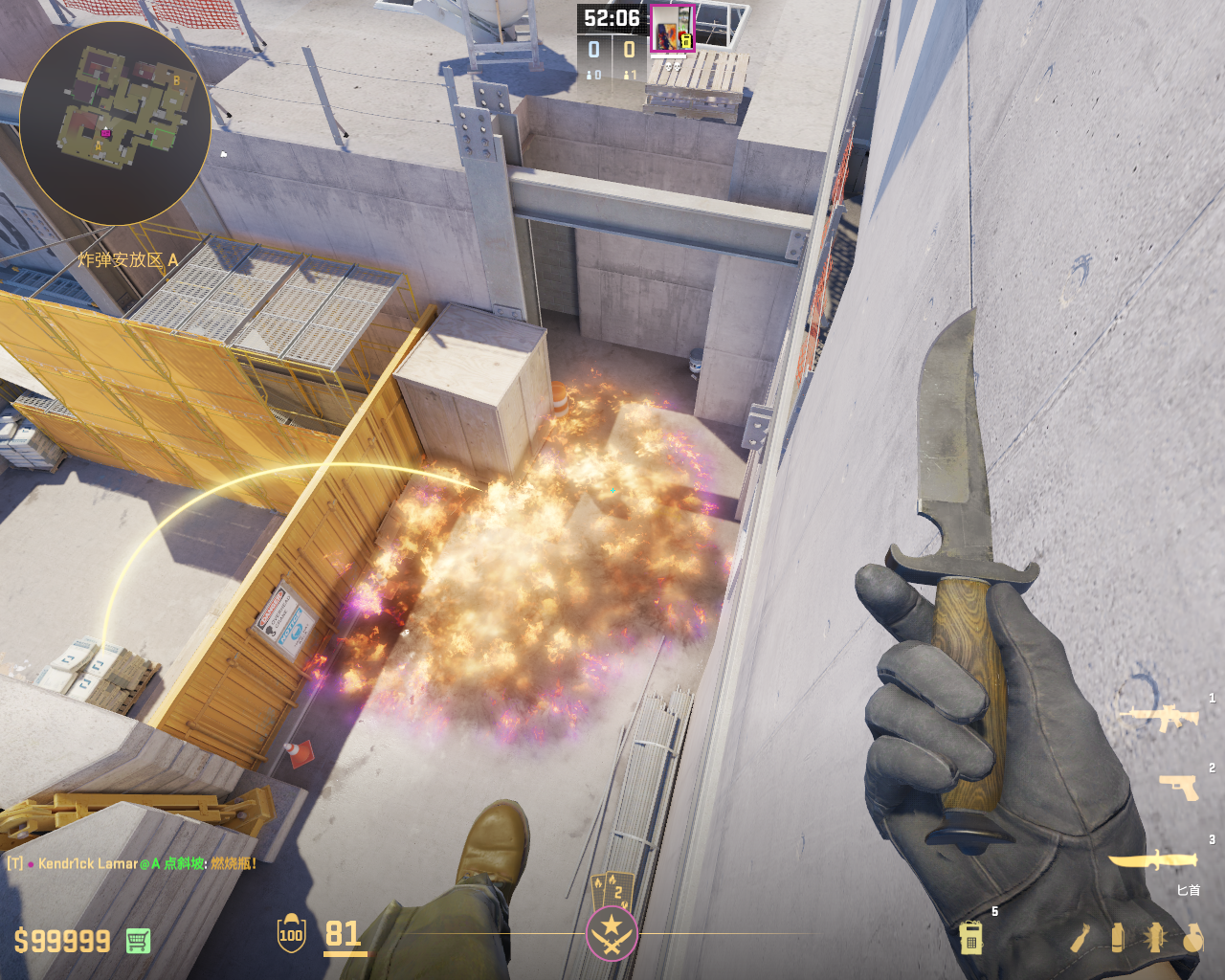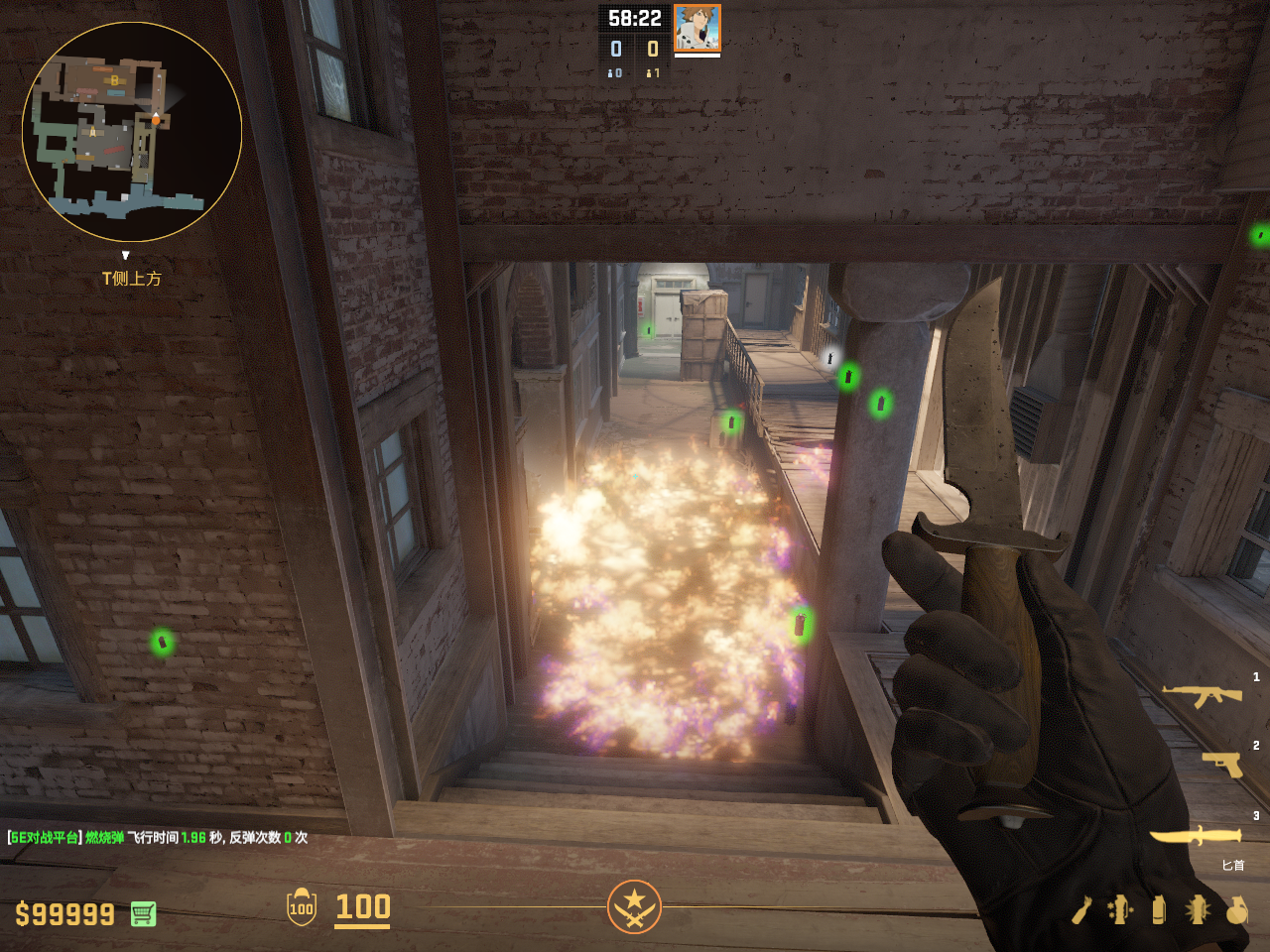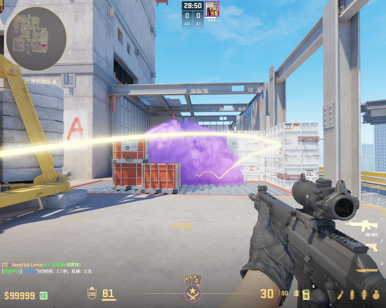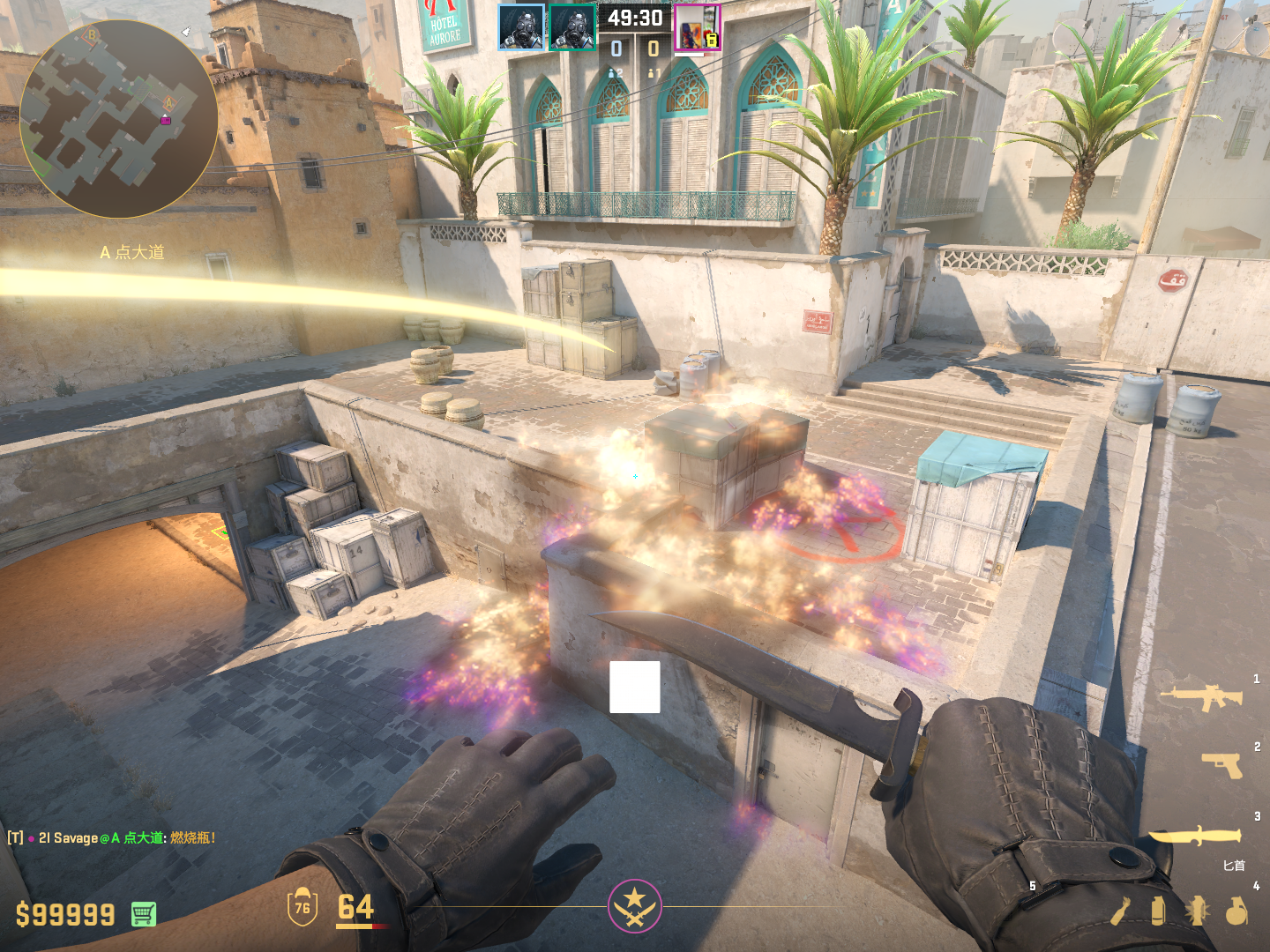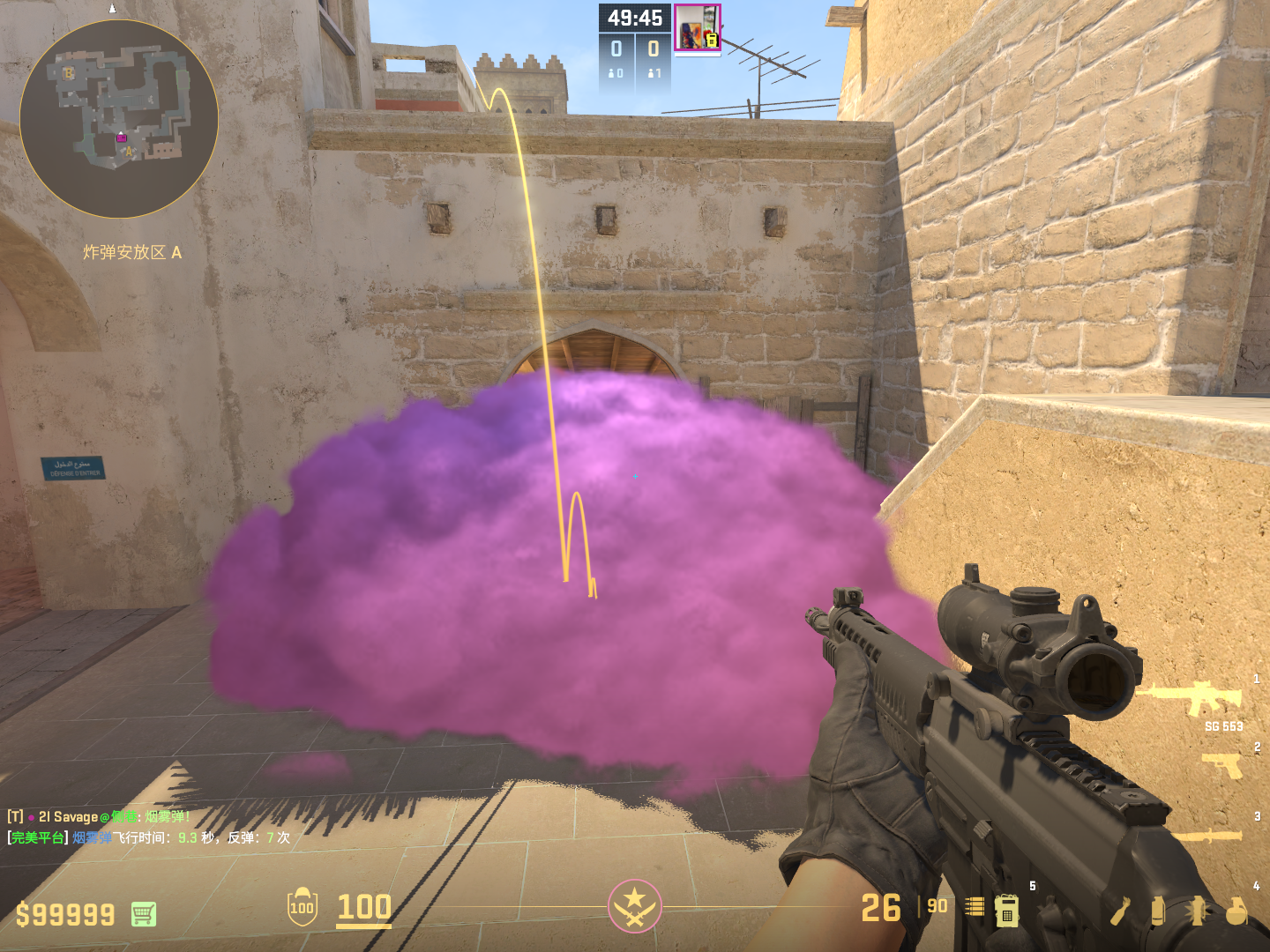 一点多用的闪光 但只能白玻璃房和死点直架的敌人 不白出门队友只适合在此处丢完警家烟雾弹顺手丢出