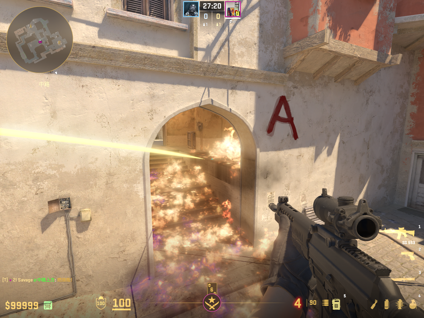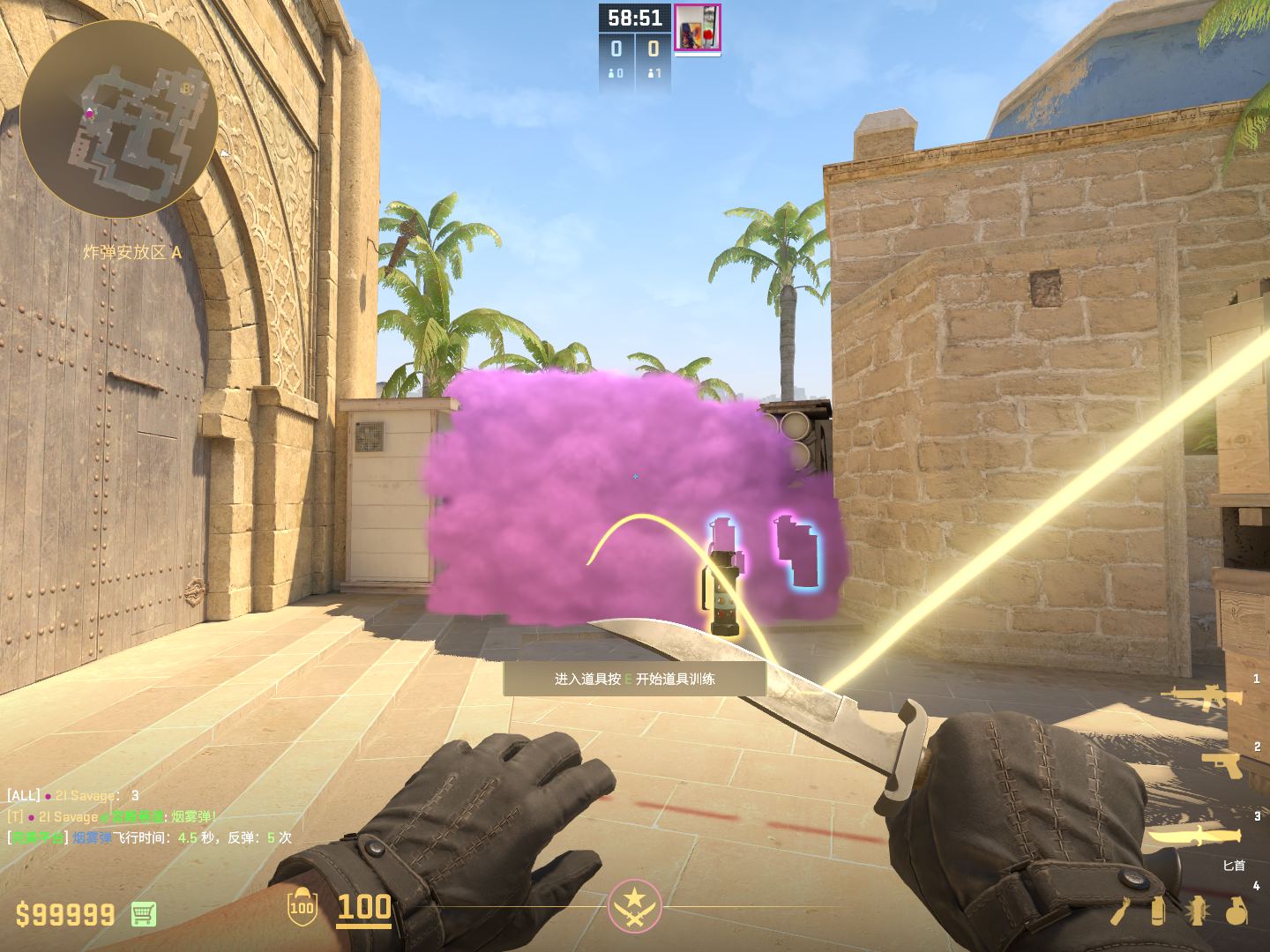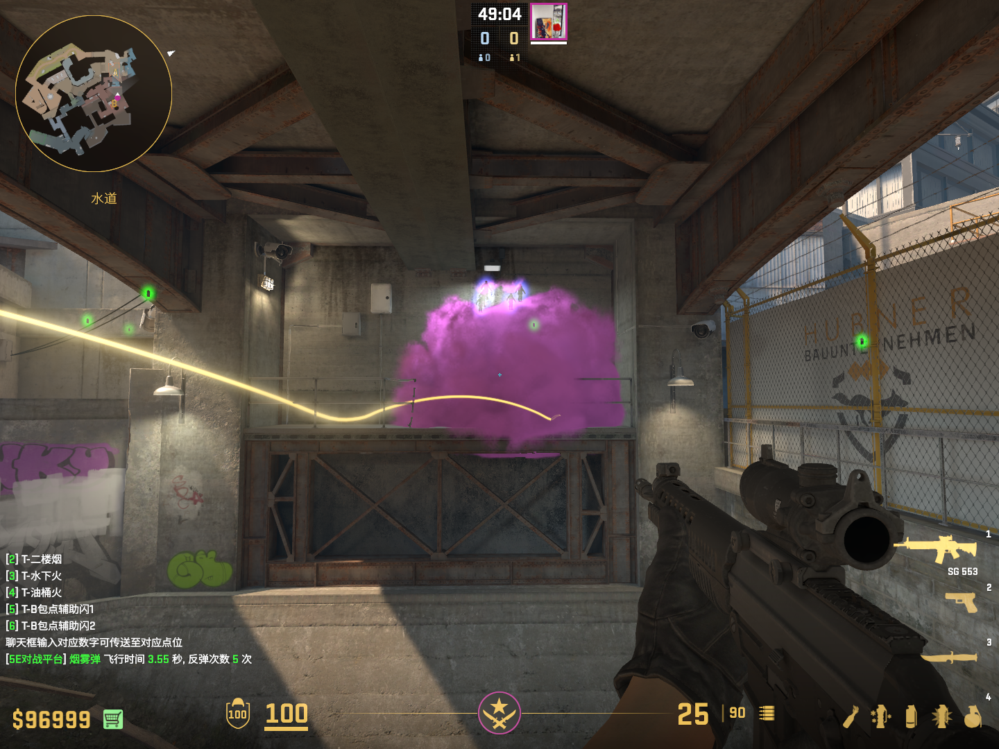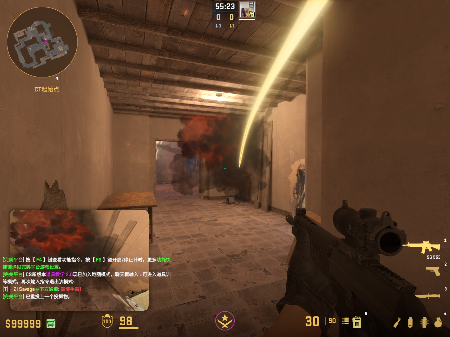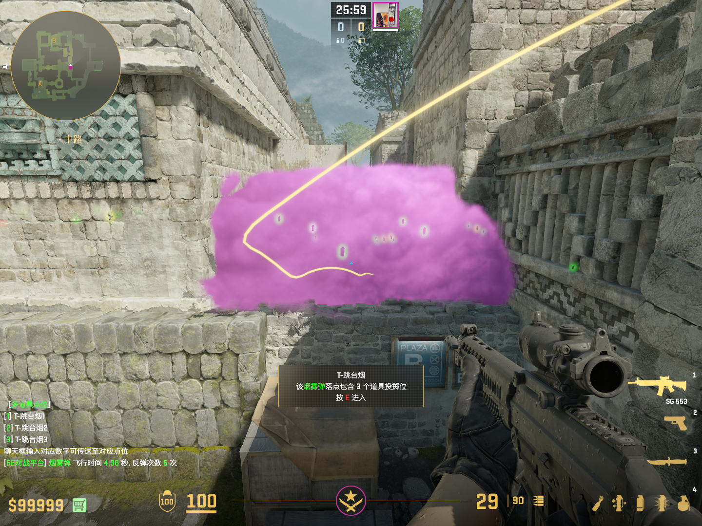 一点多用的闪光 但只能白玻璃房和死点直架的敌人 不白出门队友只适合在此处丢完警家烟雾弹顺手丢出