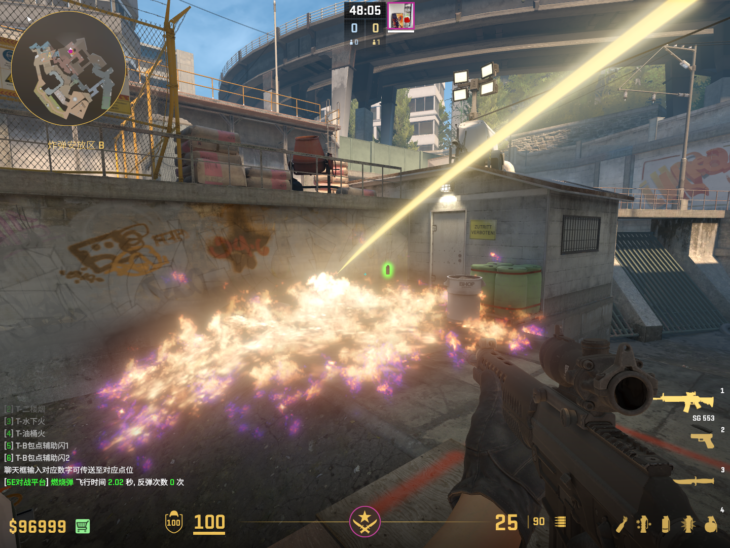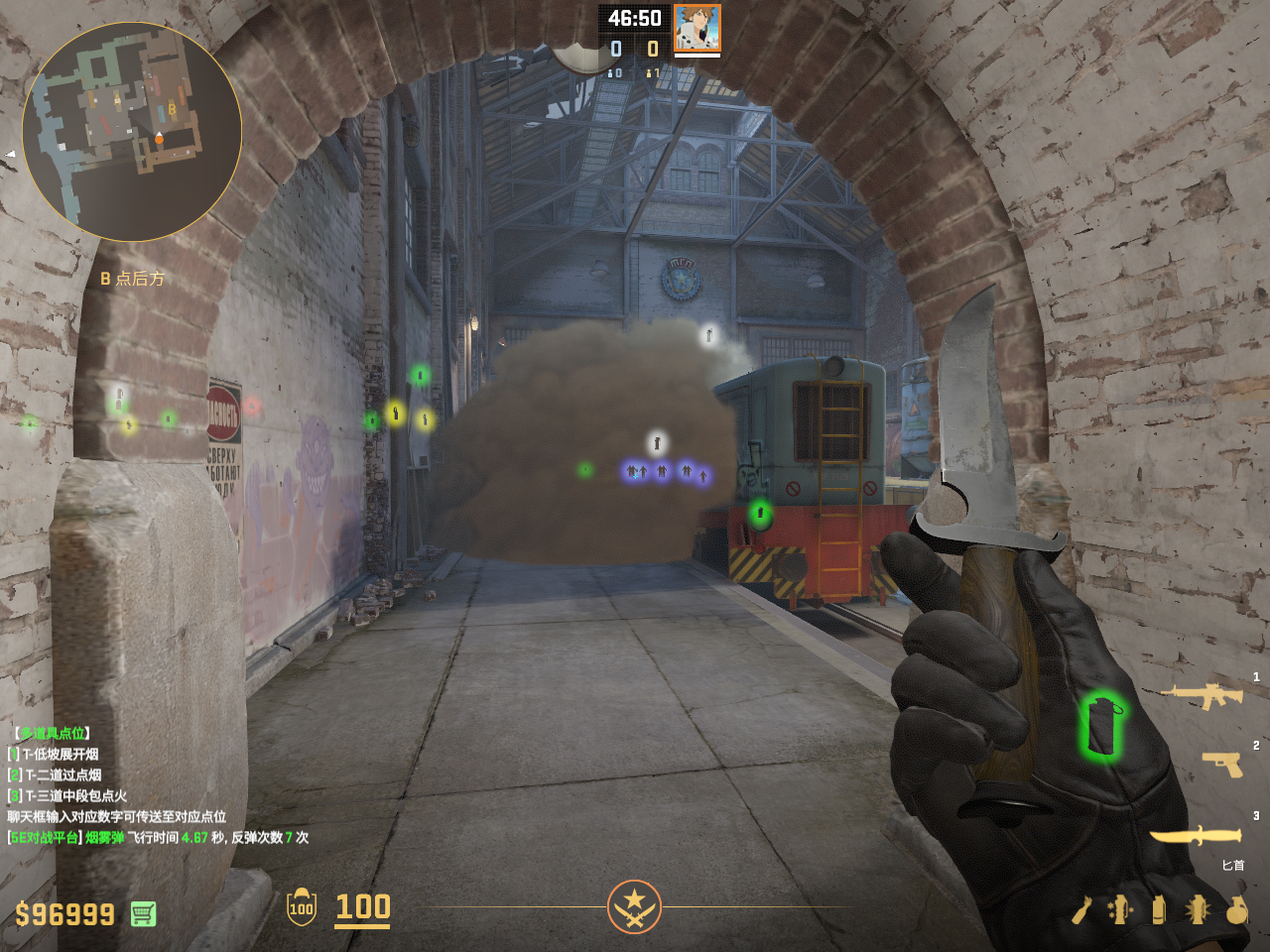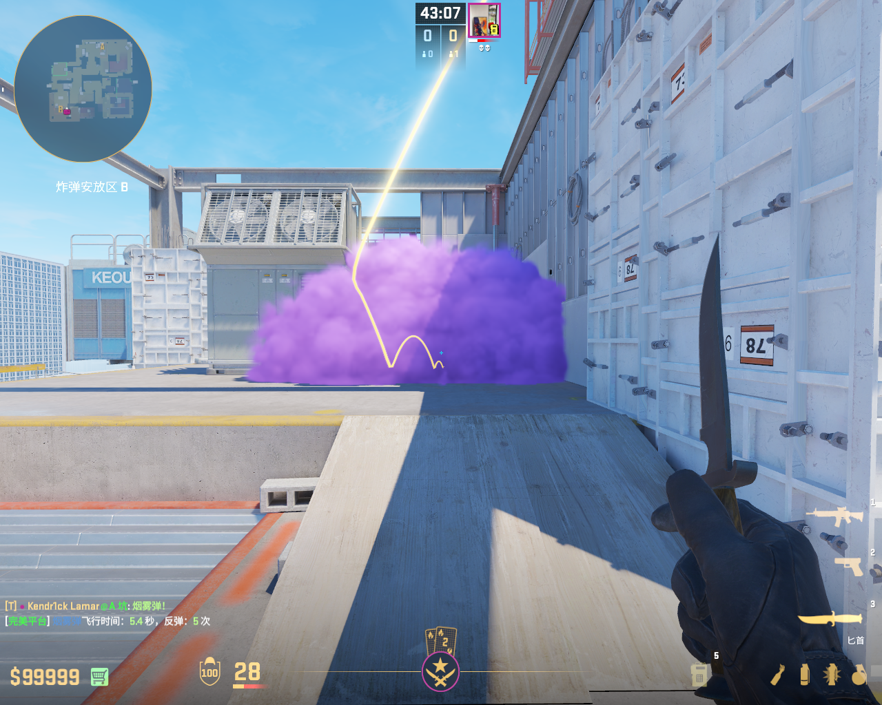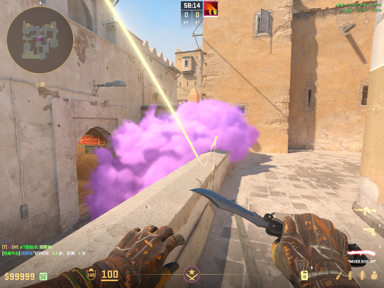一点多用的闪光 但只能白玻璃房和死点直架的敌人 不白出门队友只适合在此处丢完警家烟雾弹顺手丢出