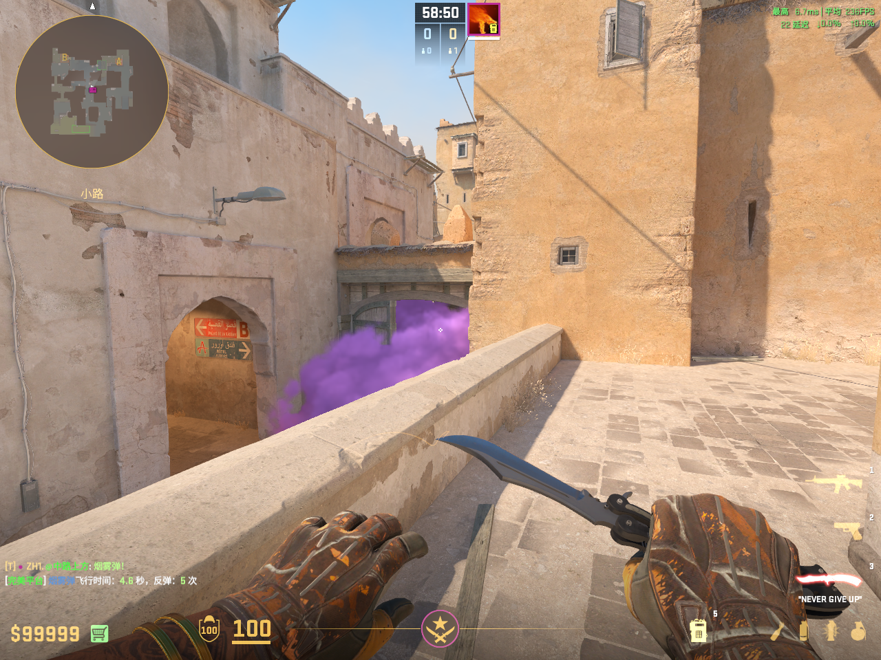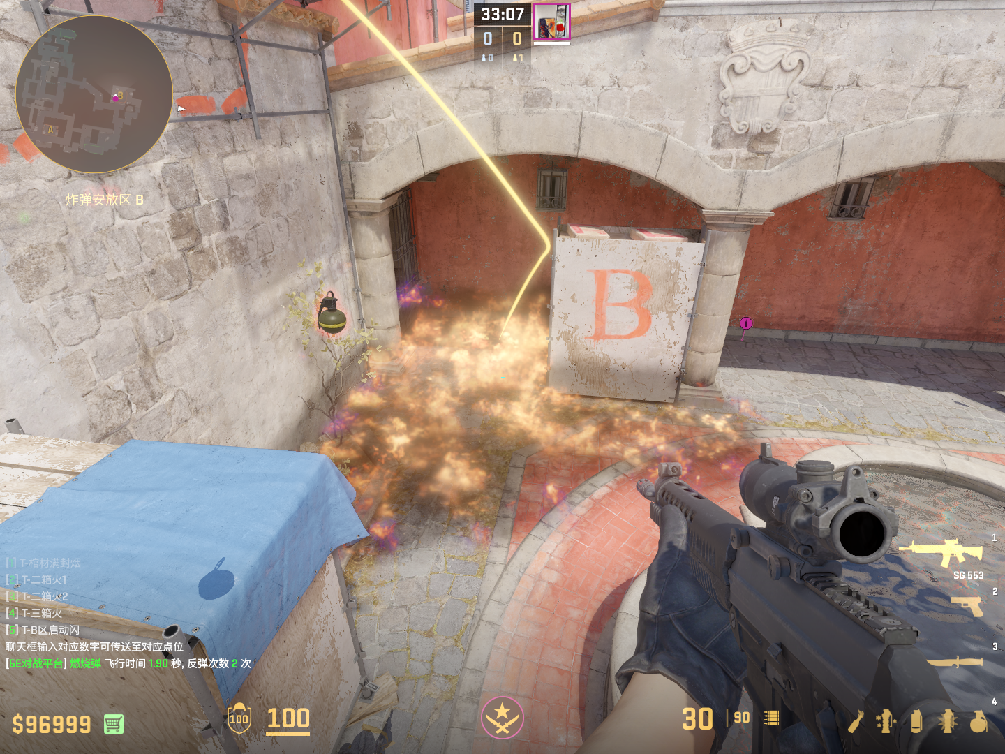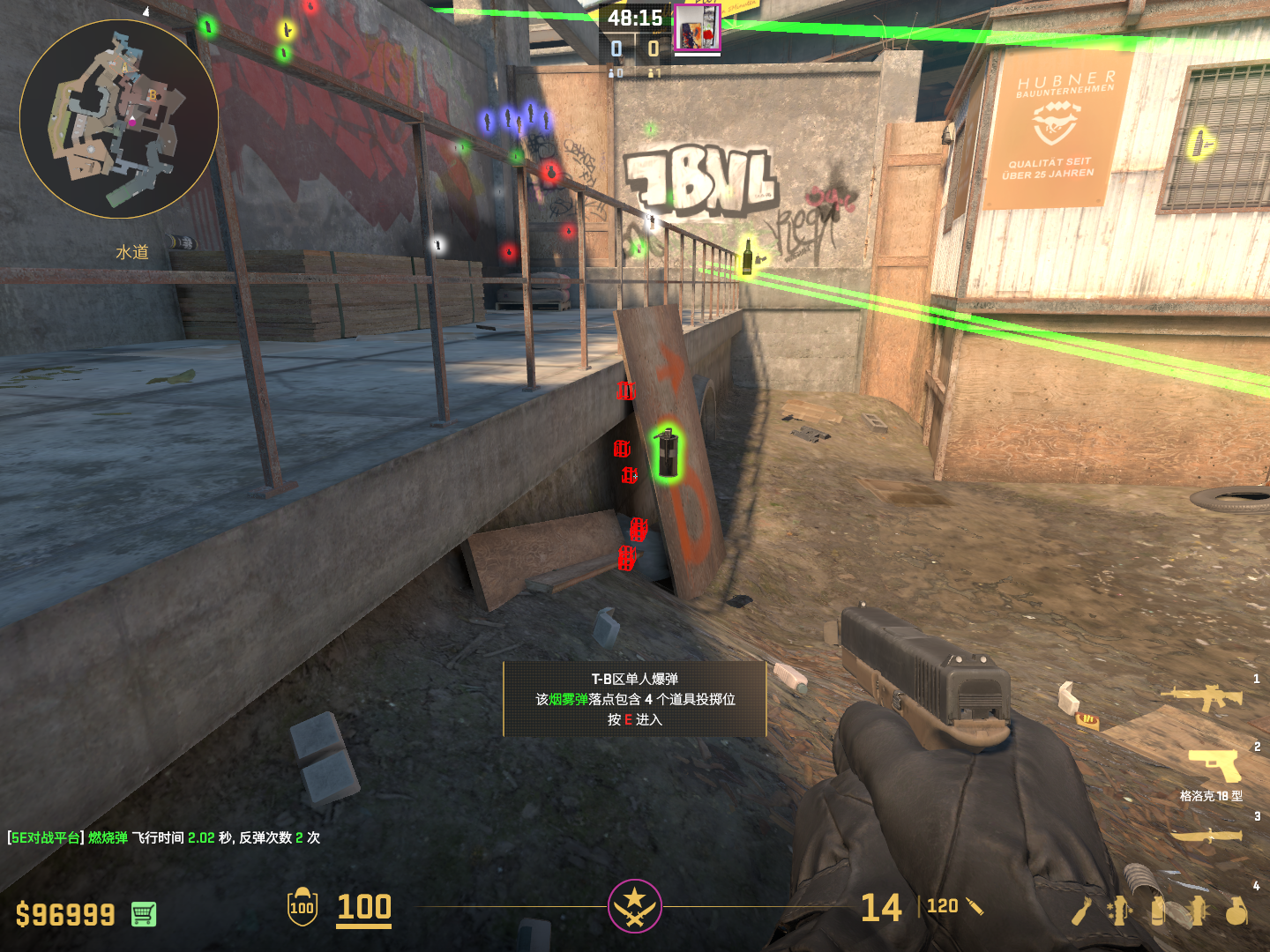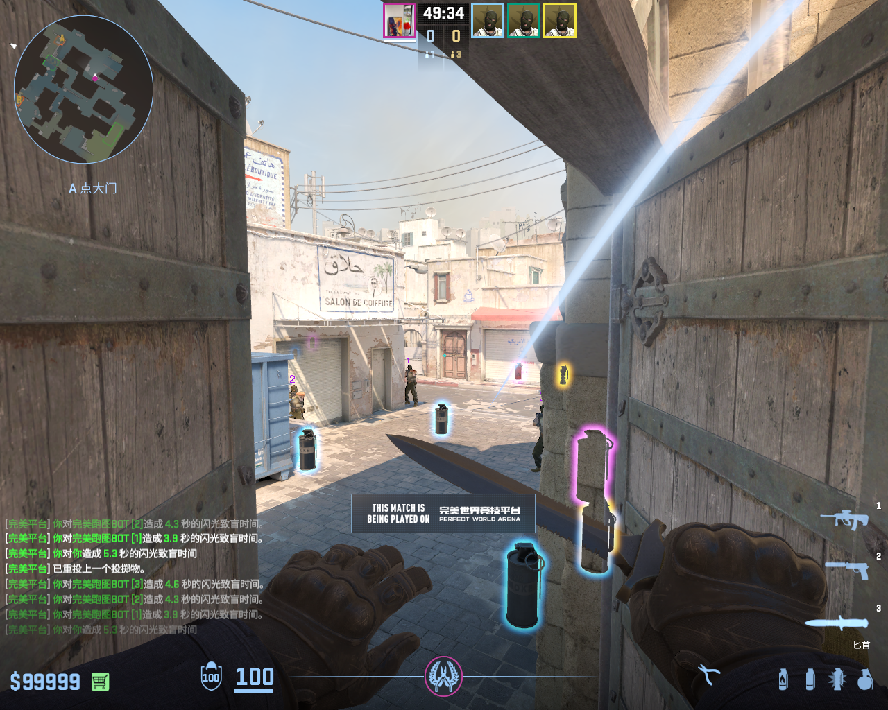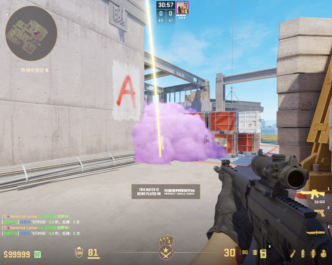 一点多用的闪光 但只能白玻璃房和死点直架的敌人 不白出门队友只适合在此处丢完警家烟雾弹顺手丢出