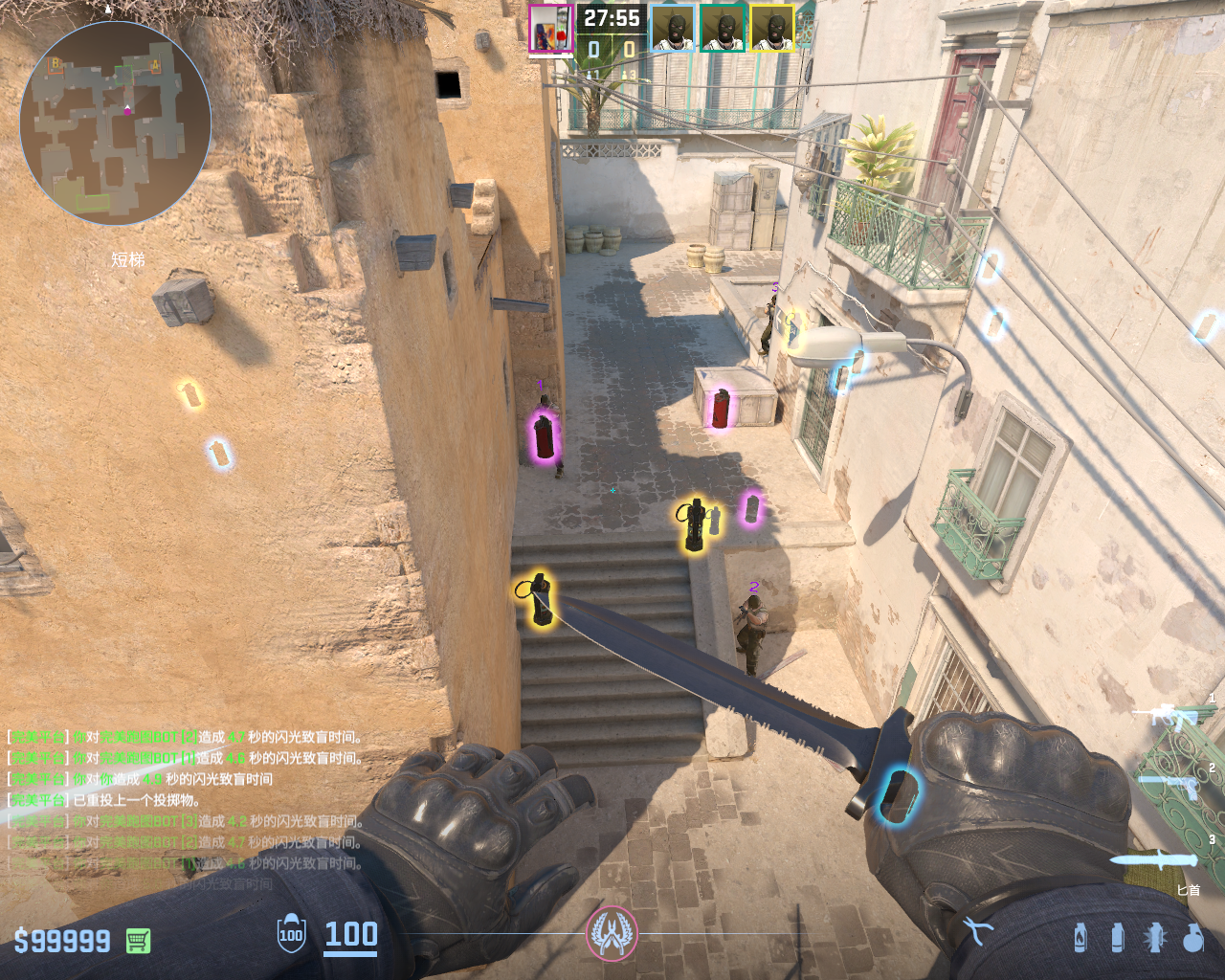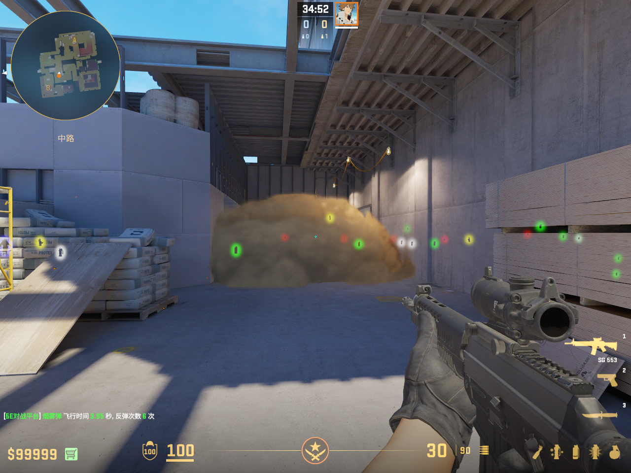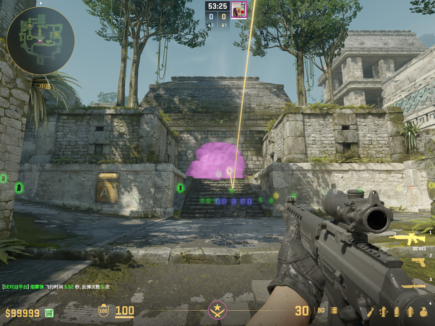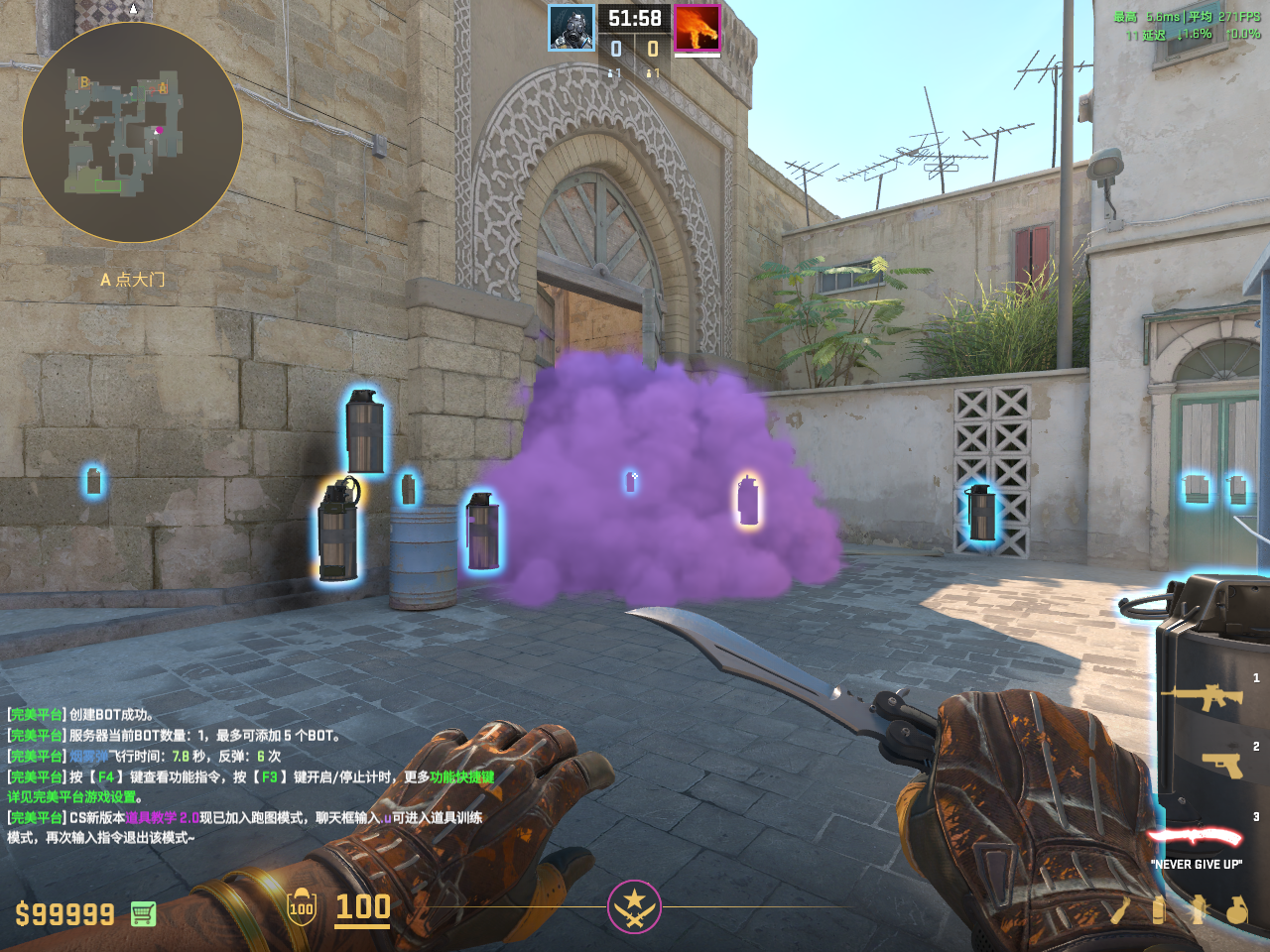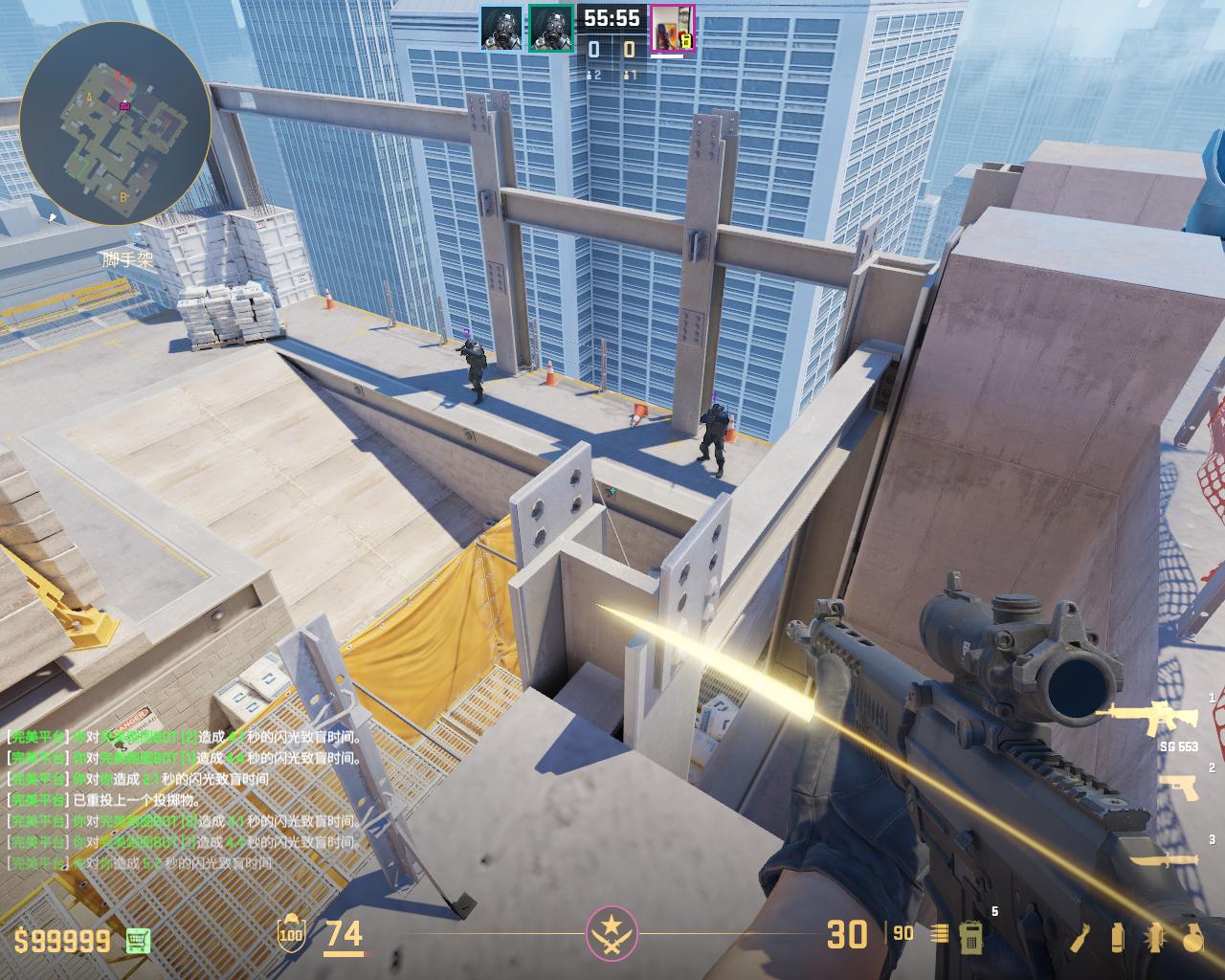 一点多用的闪光 但只能白玻璃房和死点直架的敌人 不白出门队友只适合在此处丢完警家烟雾弹顺手丢出