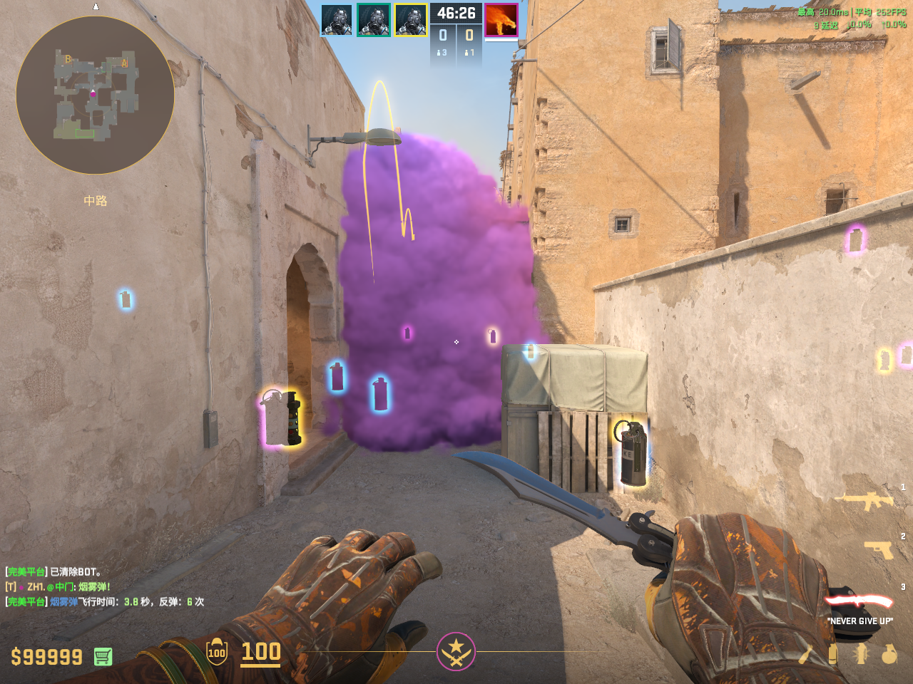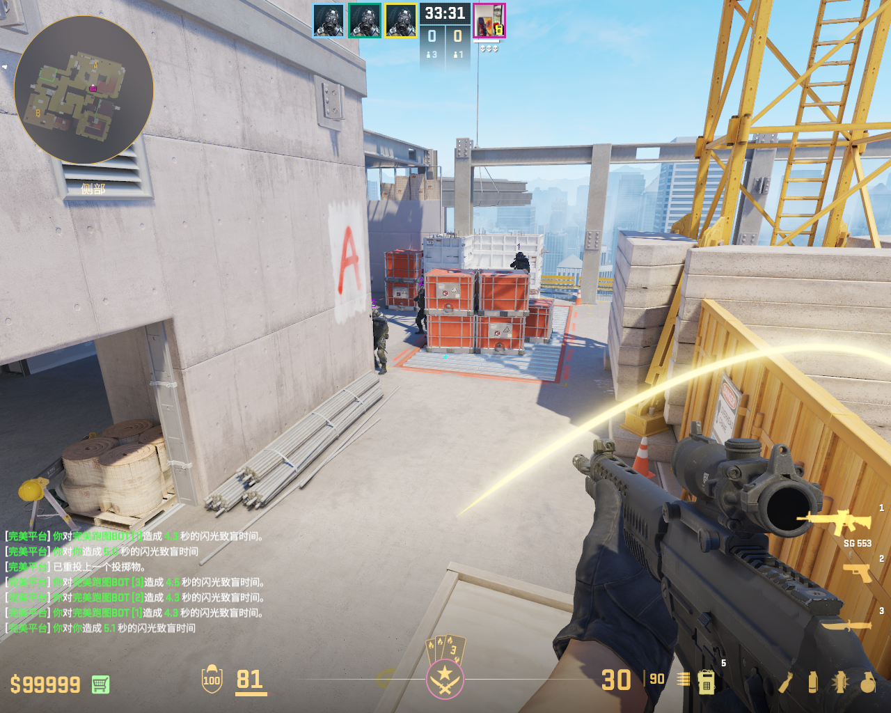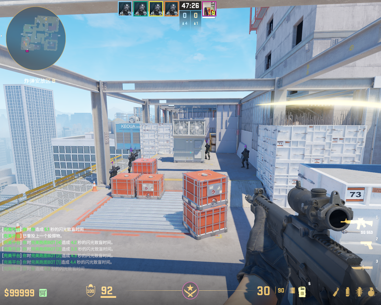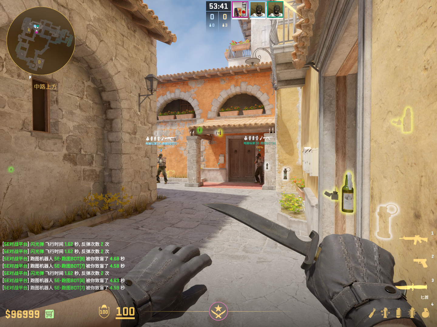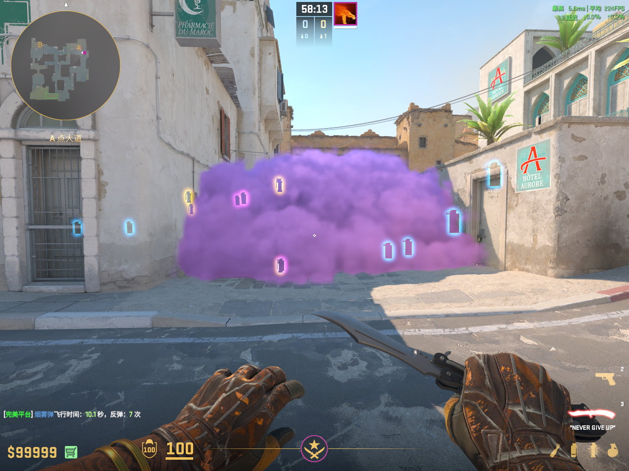 一点多用的闪光 但只能白玻璃房和死点直架的敌人 不白出门队友只适合在此处丢完警家烟雾弹顺手丢出