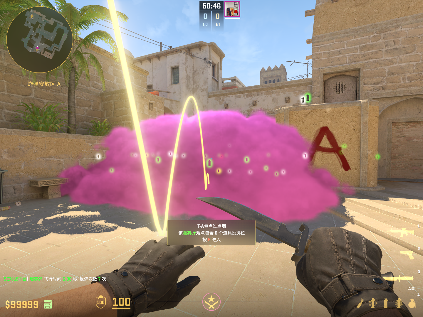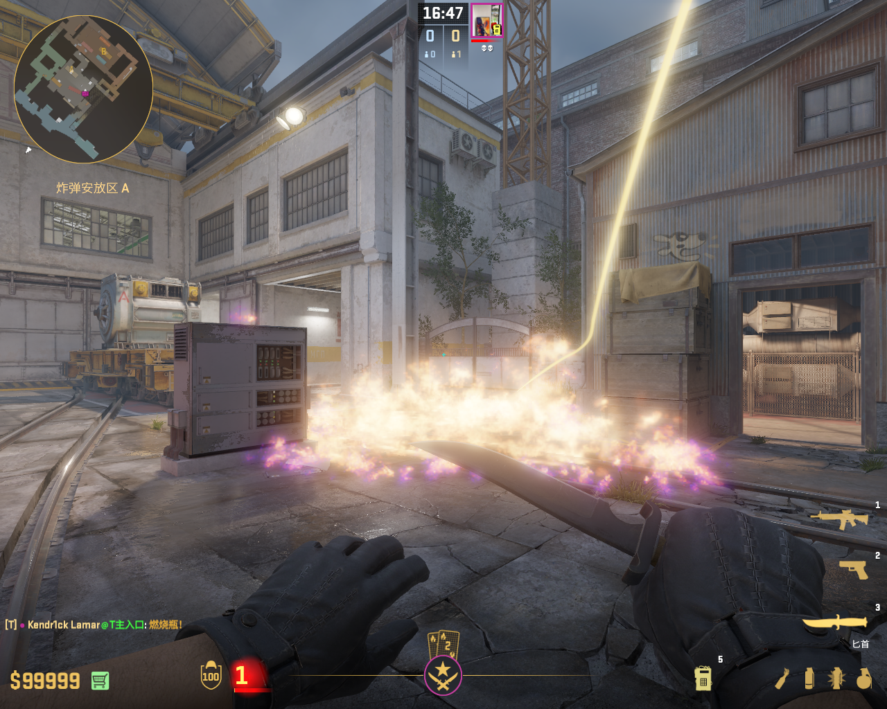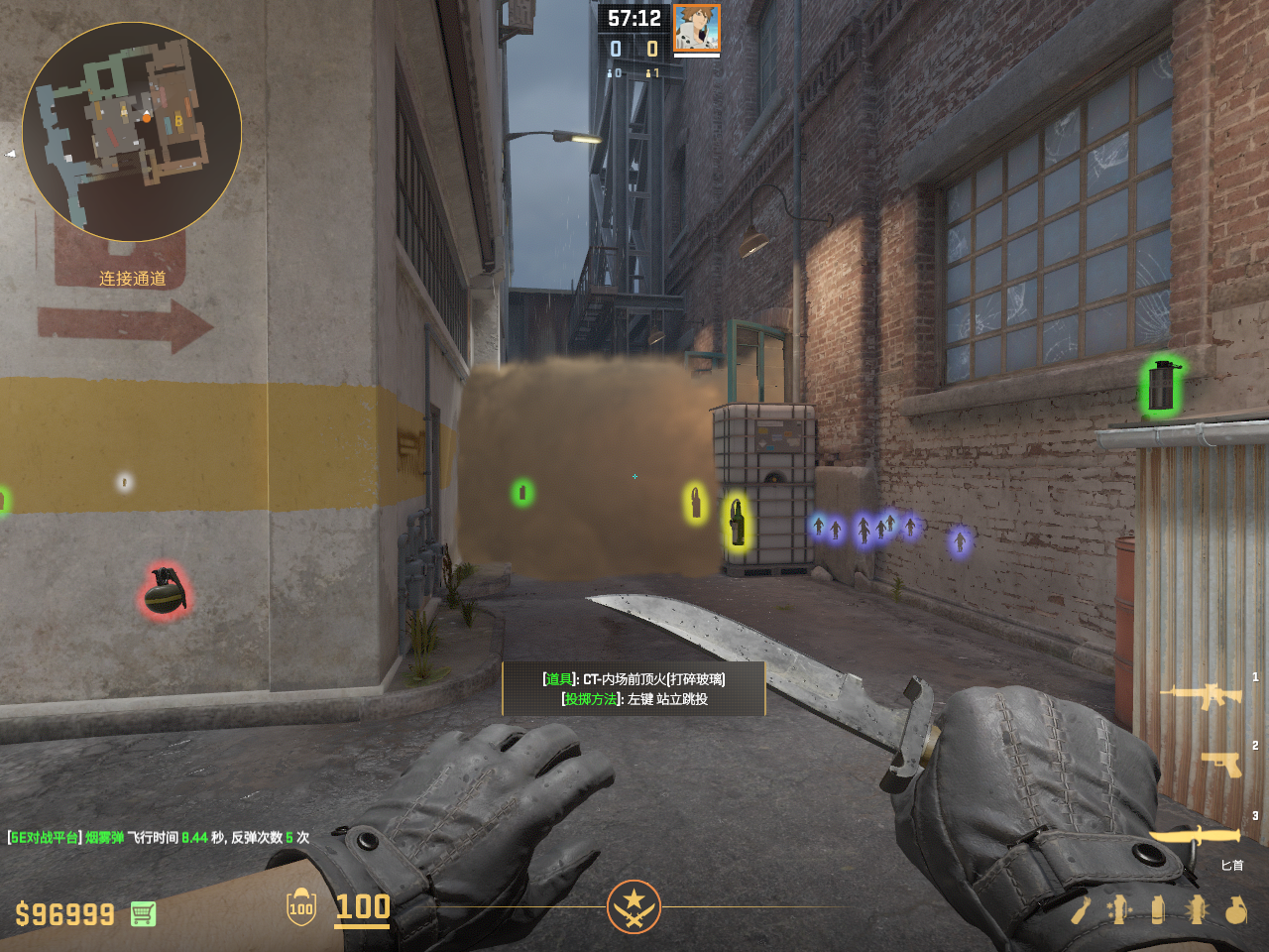 个 T方投掷物教学。T方道具主要用于进攻,包括封烟、闪光推进、燃烧瓶清点等战术道具。