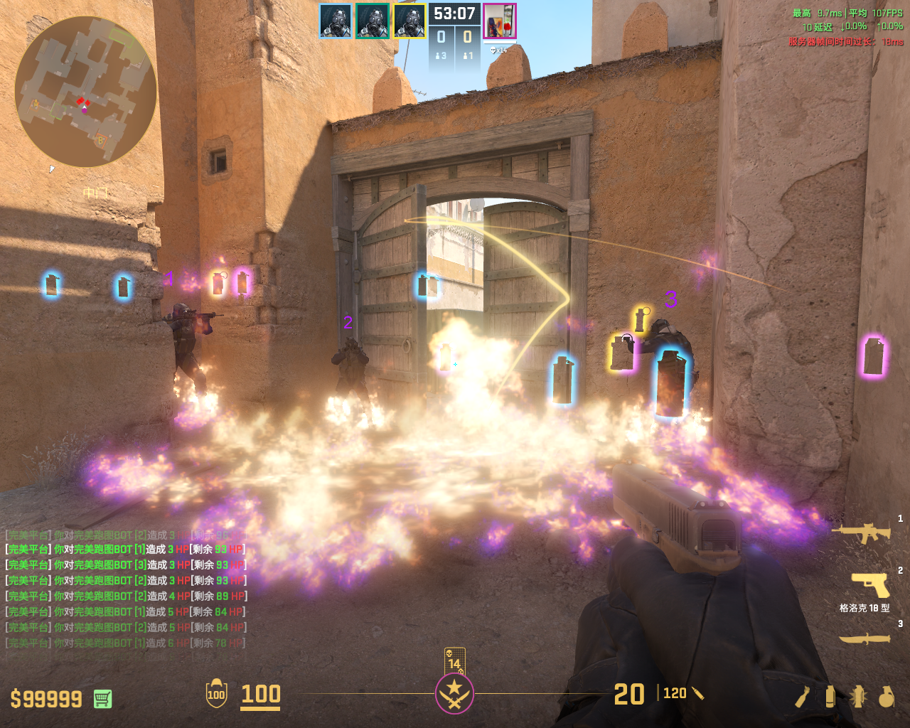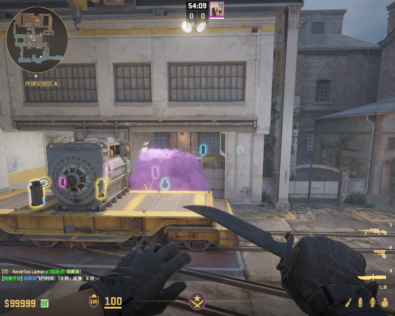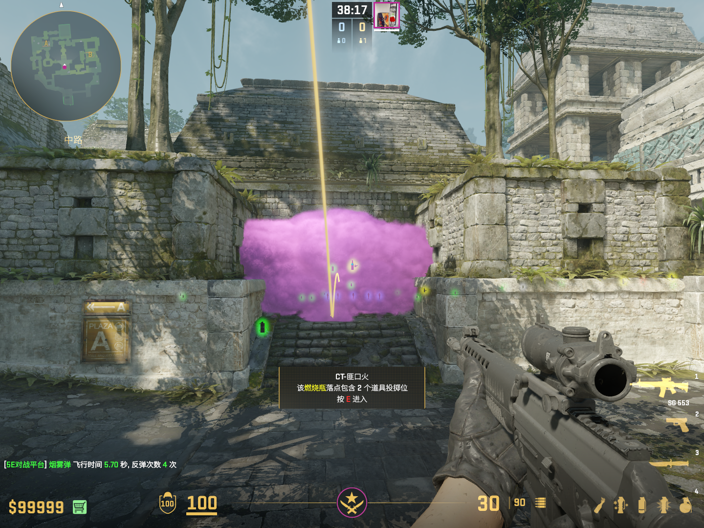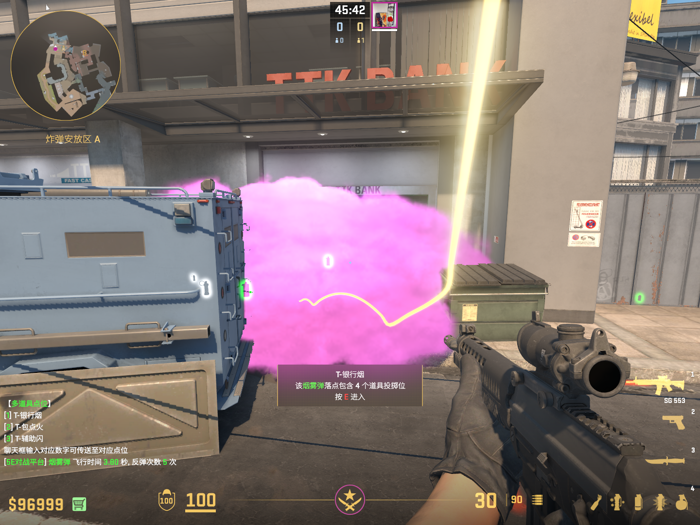 个 T方投掷物教学。T方道具主要用于进攻,包括封烟、闪光推进、燃烧瓶清点等战术道具。