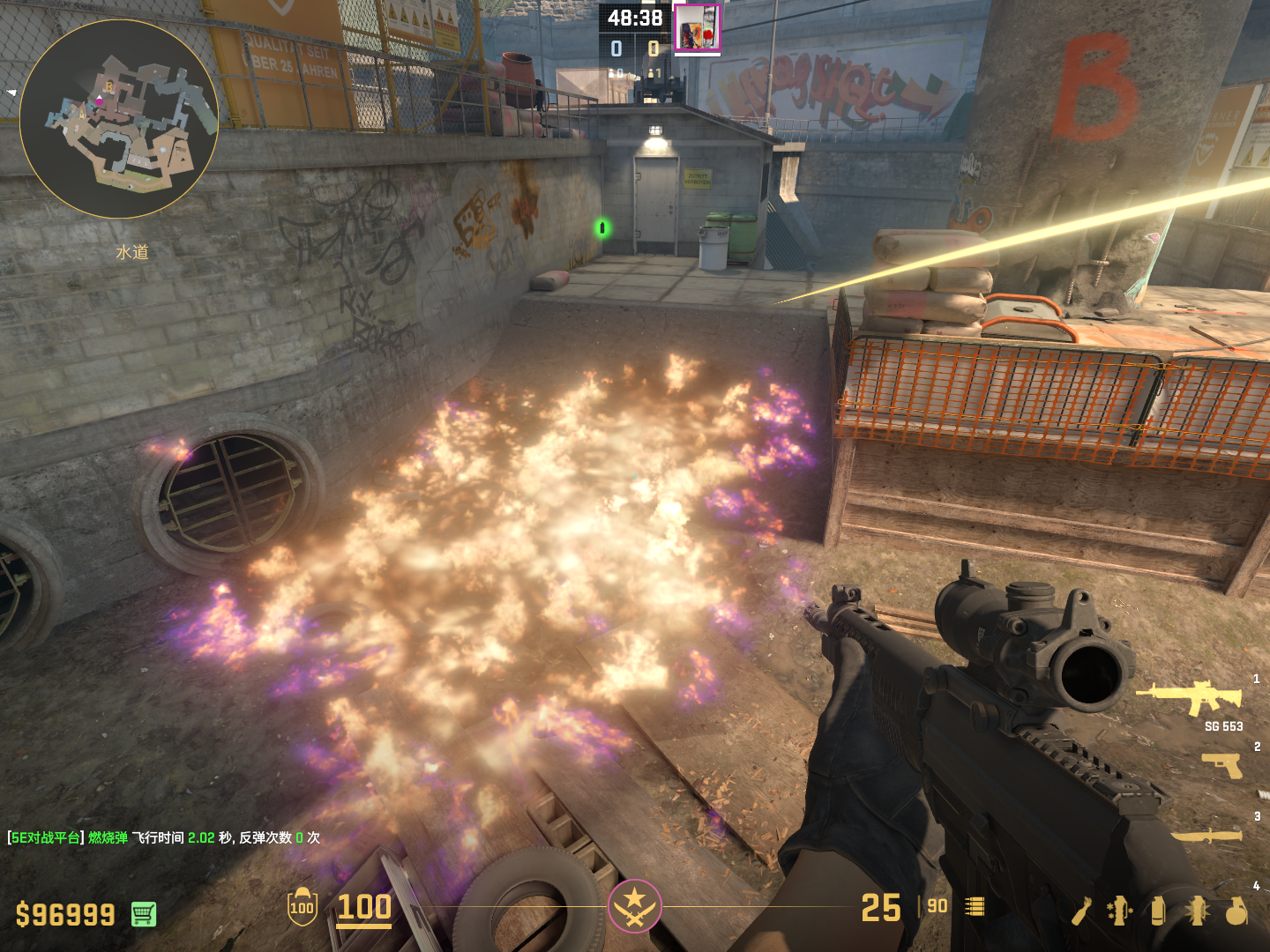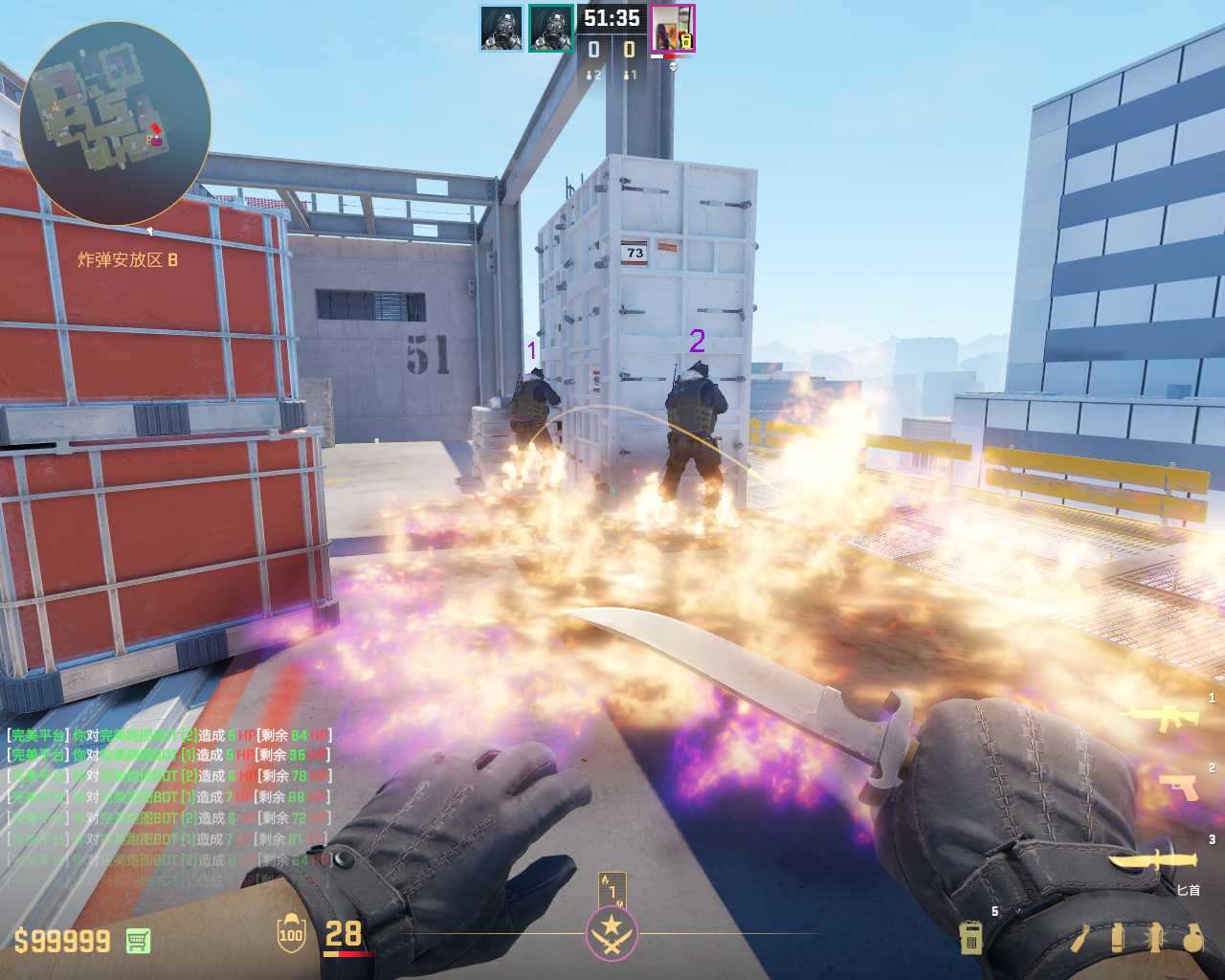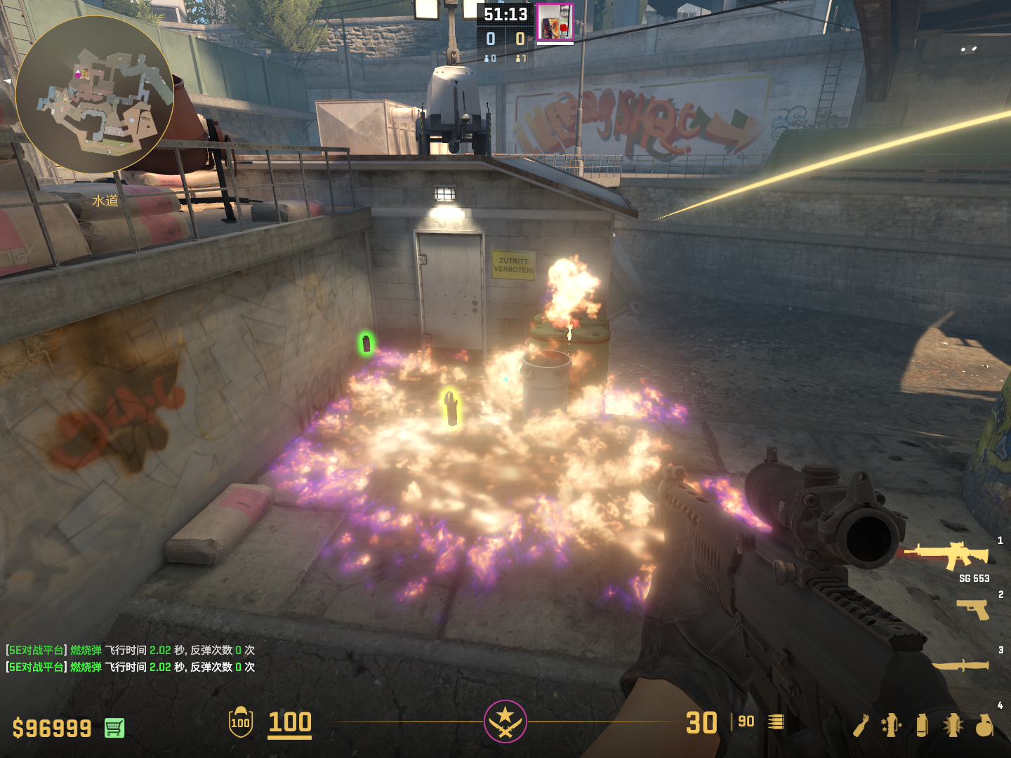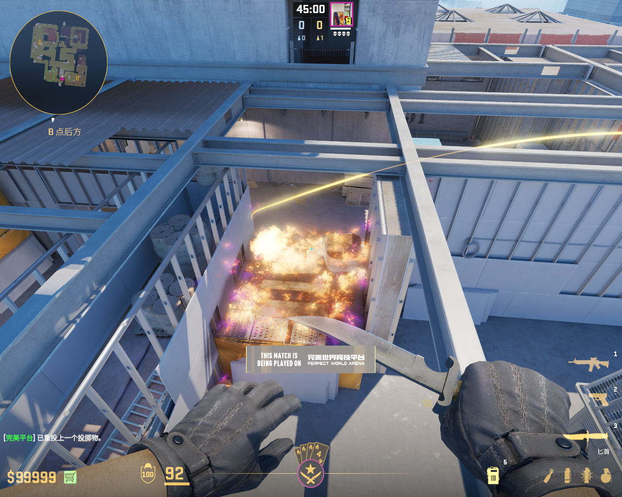 B外丢出的B包柱子后火 清理柱子后敌人 还可以配合水下队友烧黑屋 如果黑屋敌人要缩回去会吃两颗火