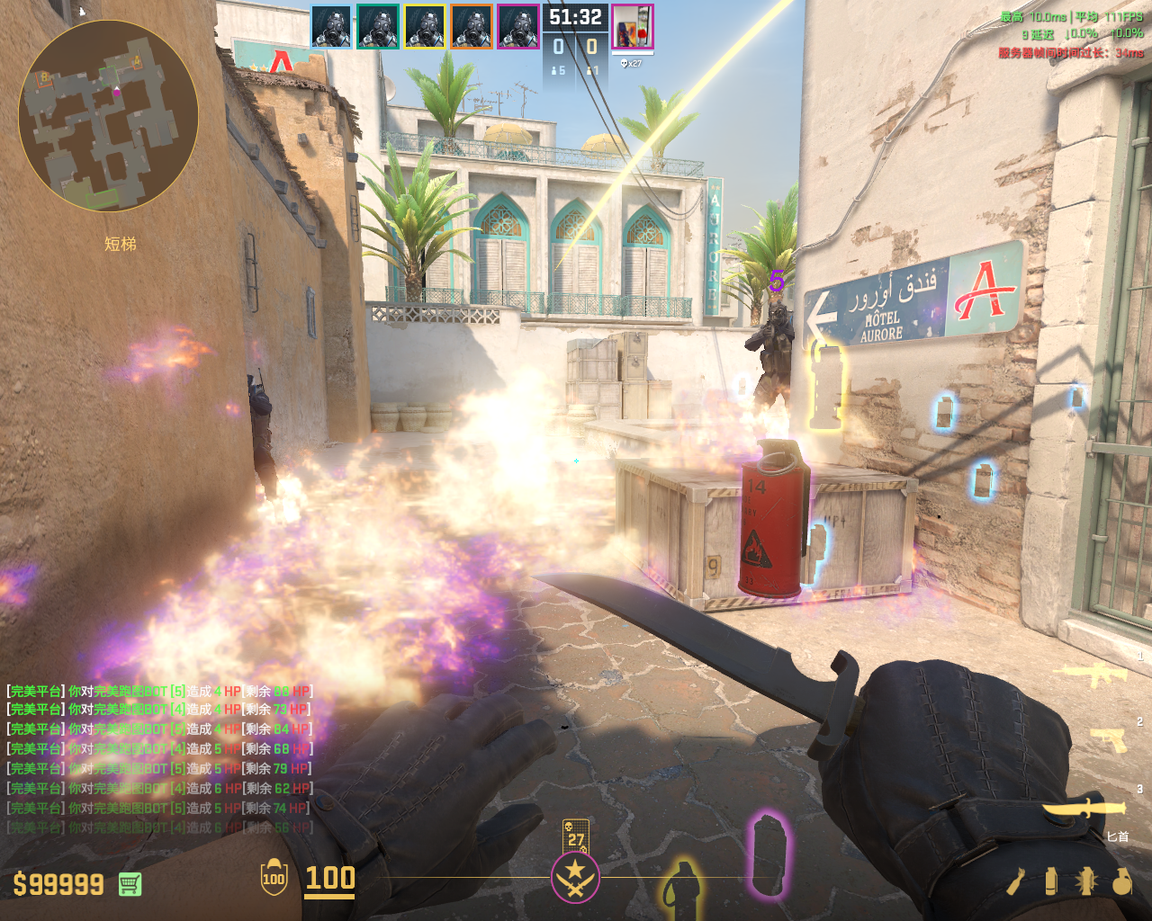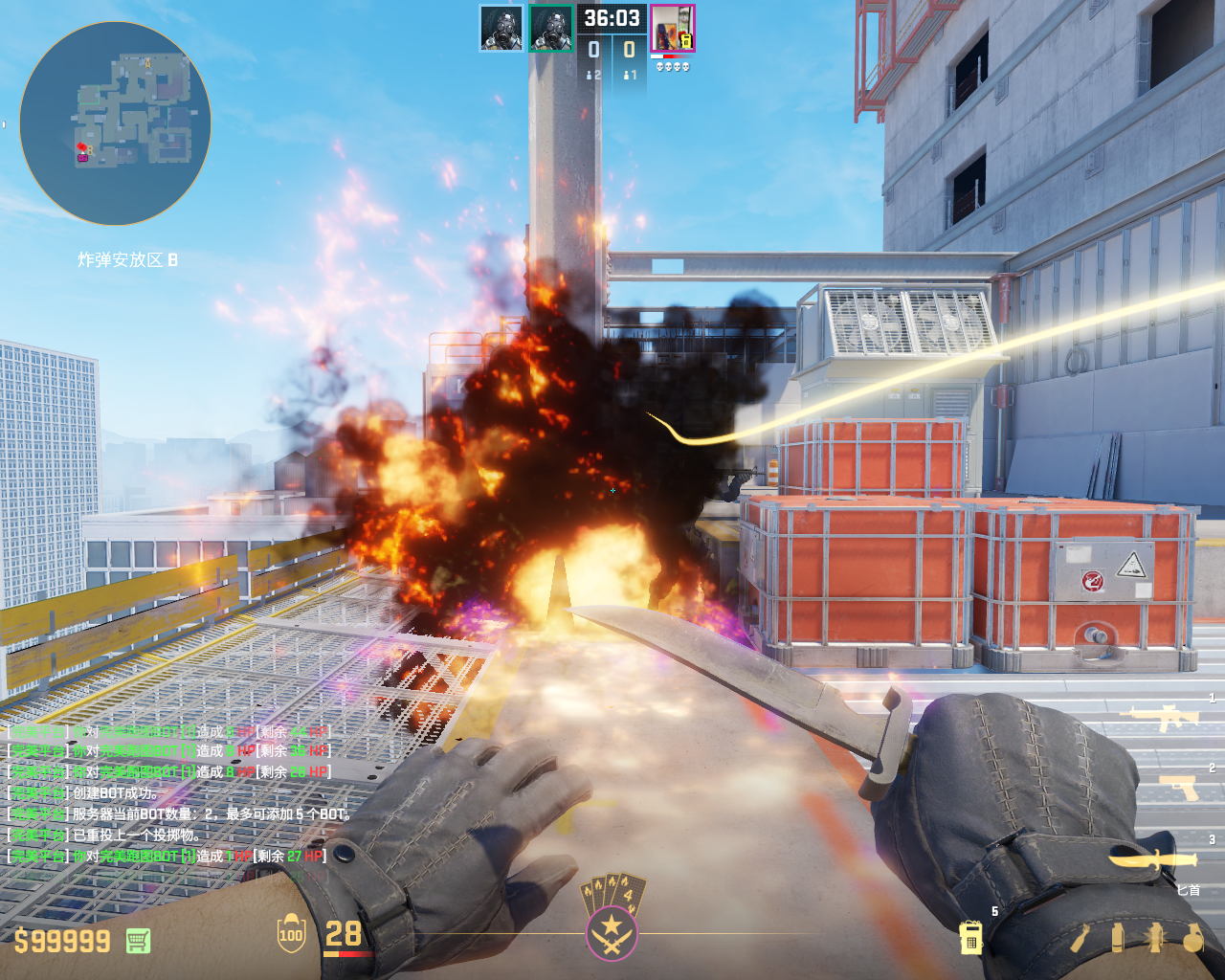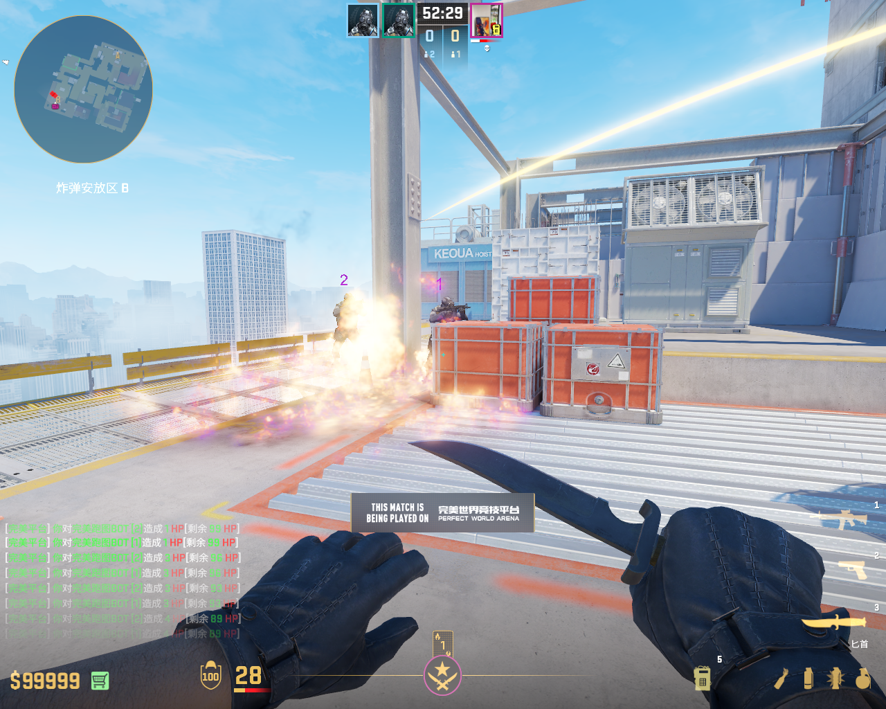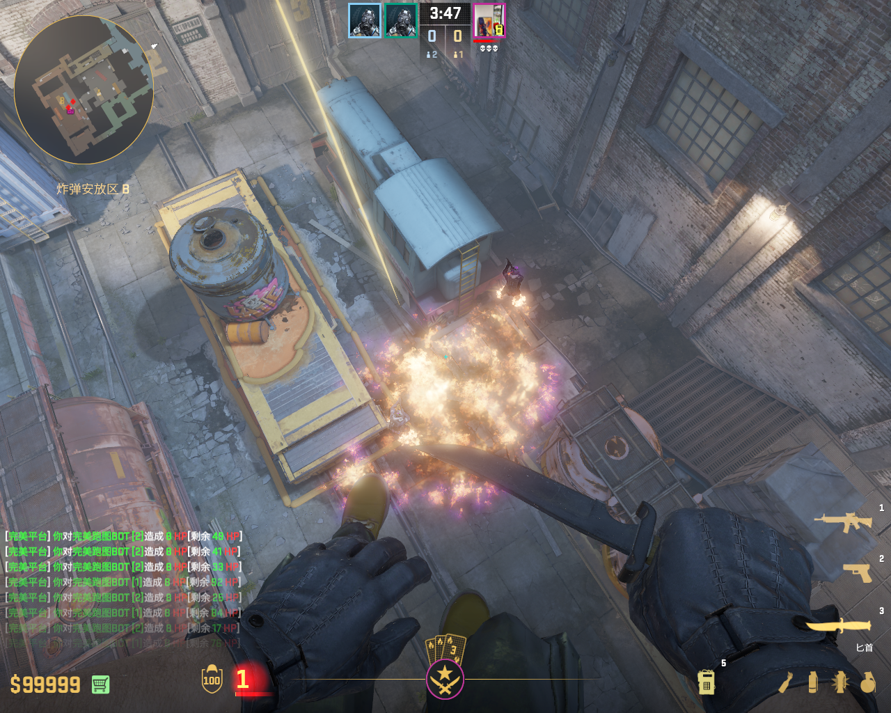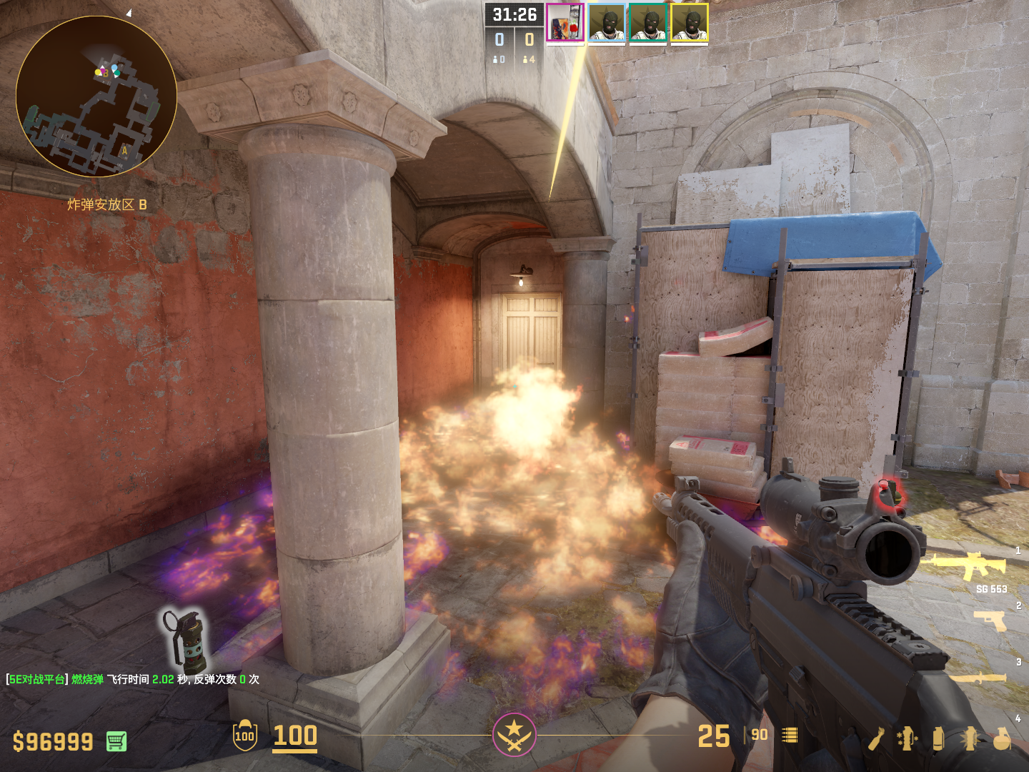 B外丢出的B包柱子后火 清理柱子后敌人 还可以配合水下队友烧黑屋 如果黑屋敌人要缩回去会吃两颗火