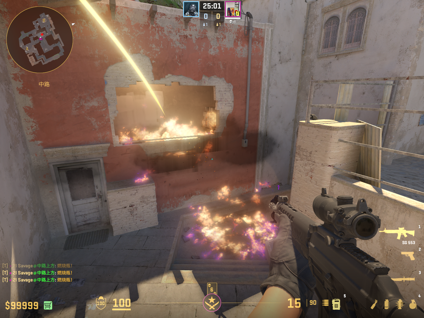 用于第一时间抢中路 配合VIP火和闪光 也可以第二时间清中路 但是中路右侧贴墙烧不满