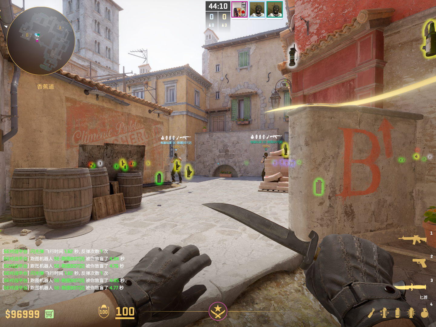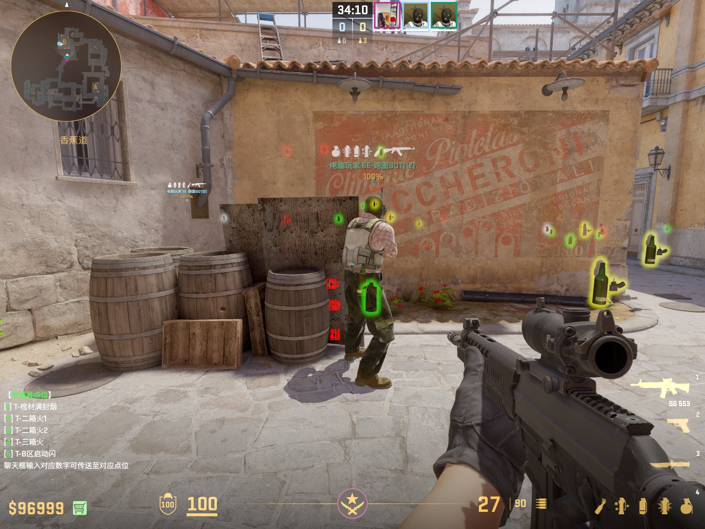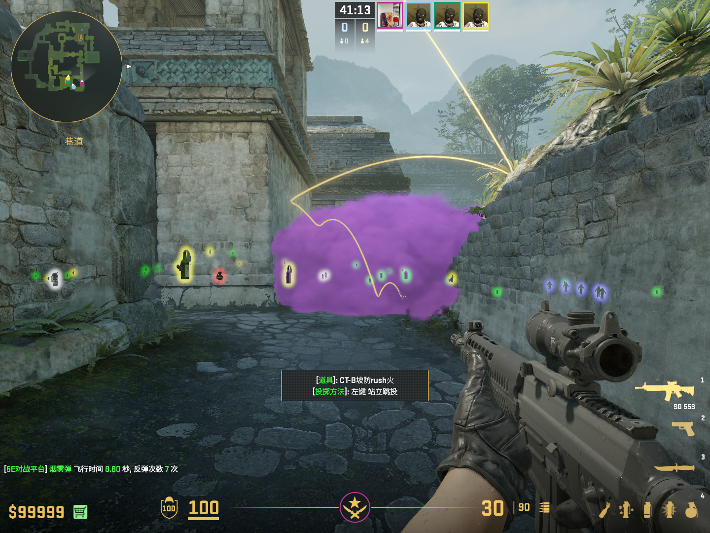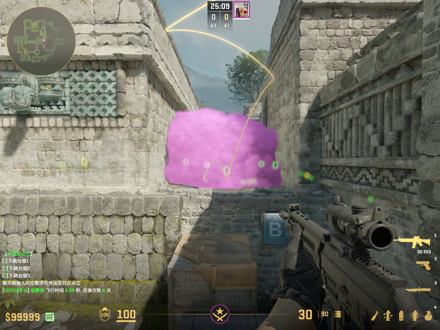 身位靠近B的队友走中路丢出 可跳水RUSH黑屋